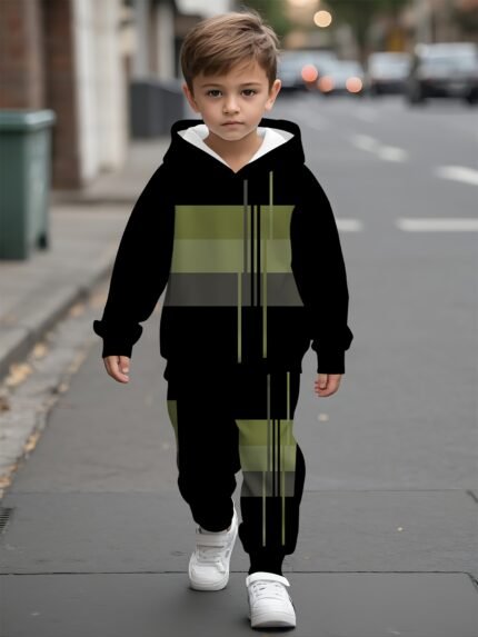 Baby boy hooded sweatshirt set, fashionable color-blocking pattern, new spring and autumn casual and comfortable set, Perfect for Outdoor