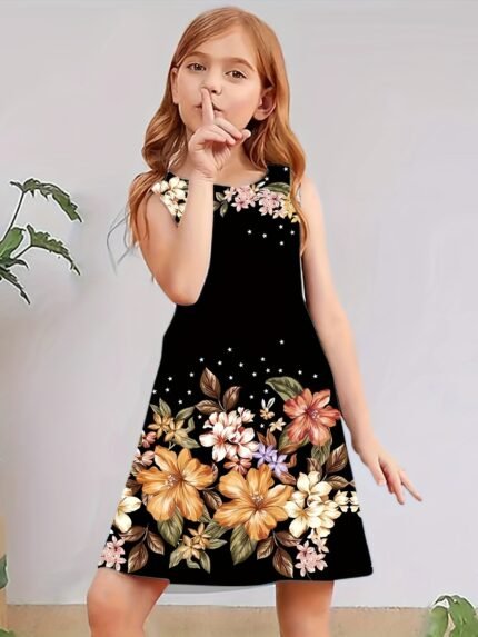 Fashion Casual Little Girl Floral Sleeveless Dress Cute Flower Pattern