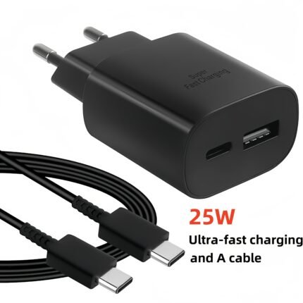 25W Super Fast Charging and Cable, Type-C 25W and USB-A QC3.0, Suitable for iPhone 16.15 | for Samsung | Android Smartphones | Tablets | Headphones | Watches, European Specifications, Portable