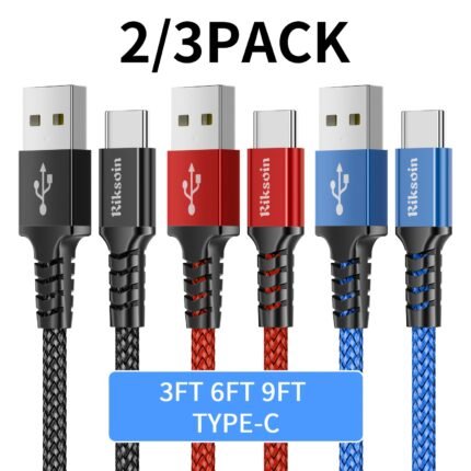 RIKSOIN Fast Charging Data Cable Set, USB to Type-C Nylon Braided Cable for iPhone 16/15 Pro Max, Samsung, Google Devices, Sony/OPPO/Moto, etc., Compatible with Type-C port, fast transfer speed, 91.44cm/182.88cm/274.32cm 2/3pcs packs