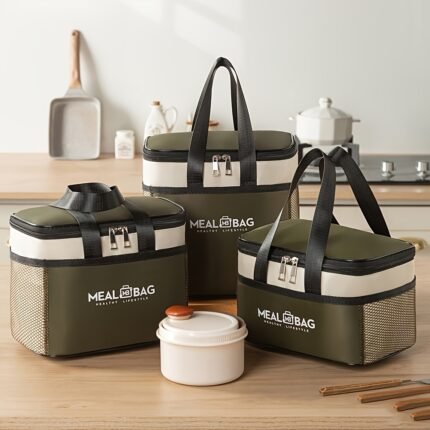 Insulated Lunch Bag – Durable Polyester, Large Capacity with Black Handles, Ideal for Picnics and Work, Non-Food Contact, Hand Wash Only, Picnic Essentials|Stylish Insulated Bag|Durable Zipper Closure, Lunch Bag Insulated