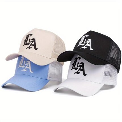Two-piece new style solid color curved baseball net hat plus “tie accessories” combination, exquisite “LA” embroidery, adjustable lightweight and breathable baseball cap best choice for traveling, traveling, holiday gifts