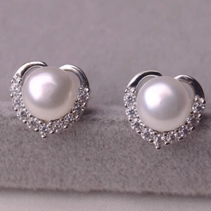 1 Pair READKISS Elegant Imitation Pearl & Zirconia Heart Stud Earrings – Sparkling Rhinestone Accents, Nickel-Free Copper Plated for Daily Wear, Weddings, Valentine’S Day – Women’S Jewelry, Wedding Jewelry, Valentine Jewelry, Sophisticated Design, Durable Jewelry