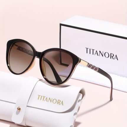 Titanoa – Stylish Cat-Eye Fashion Glasses with Metallic Accents, Perfect Holiday Gift for Women | Trendy Eyewear | Composite Frame
