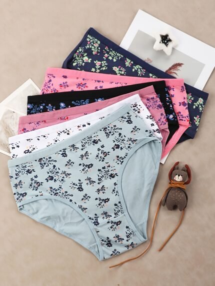 6-Pack Women’S Mid-Rise Briefs – Soft Everyday underwear with Floral Print (Pink/Blue/Black/Teal/Gray/White) – Everyday & Special Occasion Panties – Bulk Pack for Women – Elegant Floral Pattern Underwear, Comfortable Daily Wear, Stylish Undergarments, Highquality Fabric, Multipack Underwear, Home Comfort Wear