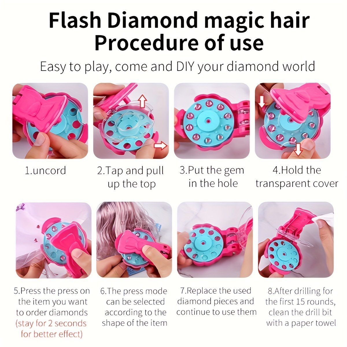Hair Jewels Stamper DIY Set, Radiance Collection with Glam Styling Tool, Artificial rhinestones, Load Click Glitter Anything, Birthday, Mother’S Day Halloween Christmas Thanksgiving Day Toy Gift for Girl