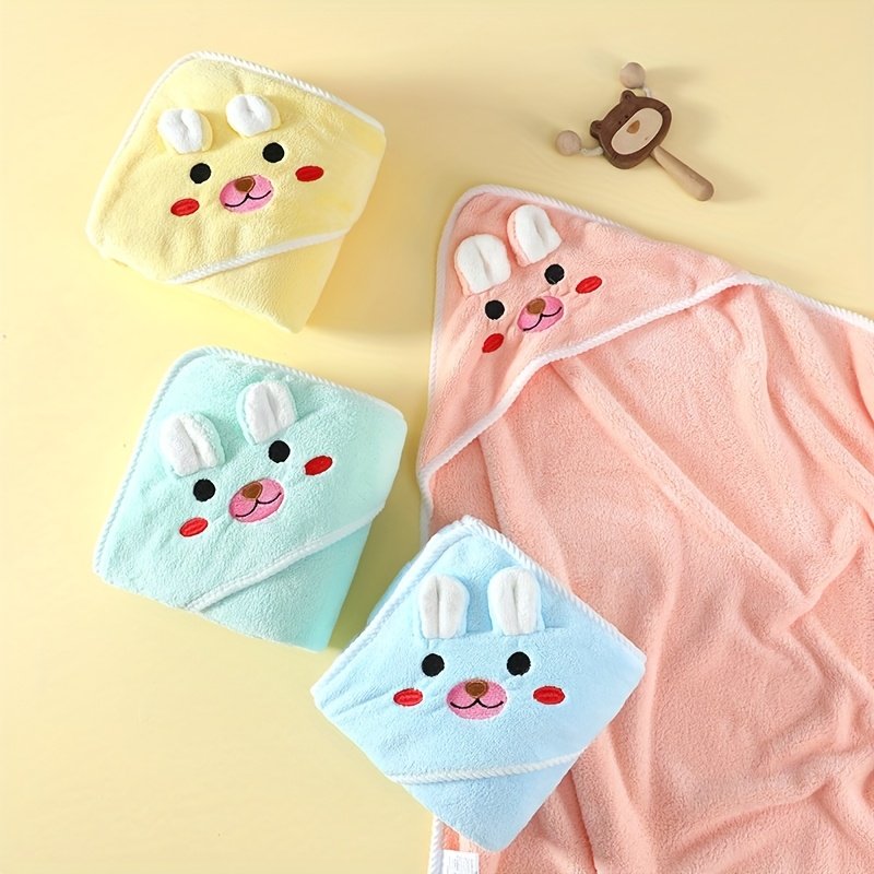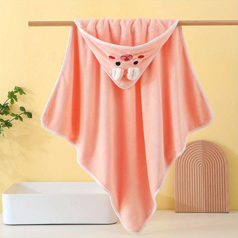 Kids Bath Towel 80x80cm, Animal Pattern Hooded Design, Polyester Material, Soft and Breathable, High Absorbency, Swaddling Blanket, Stroller Blanket
