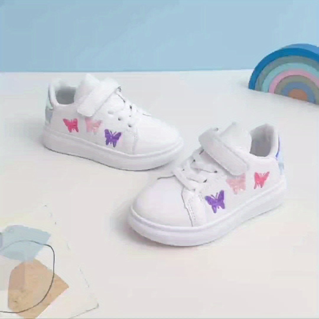 1 Pair Girls’ & Boys’ Casual Sneakers with Embroidered Butterfly & Heart Design, Closure Low-Top Shoes – Breathable PU Upper, Fabric Lining & Rubber Sole for School, Play & Casual Attire – Spring Summer Fall Fashion Shoes