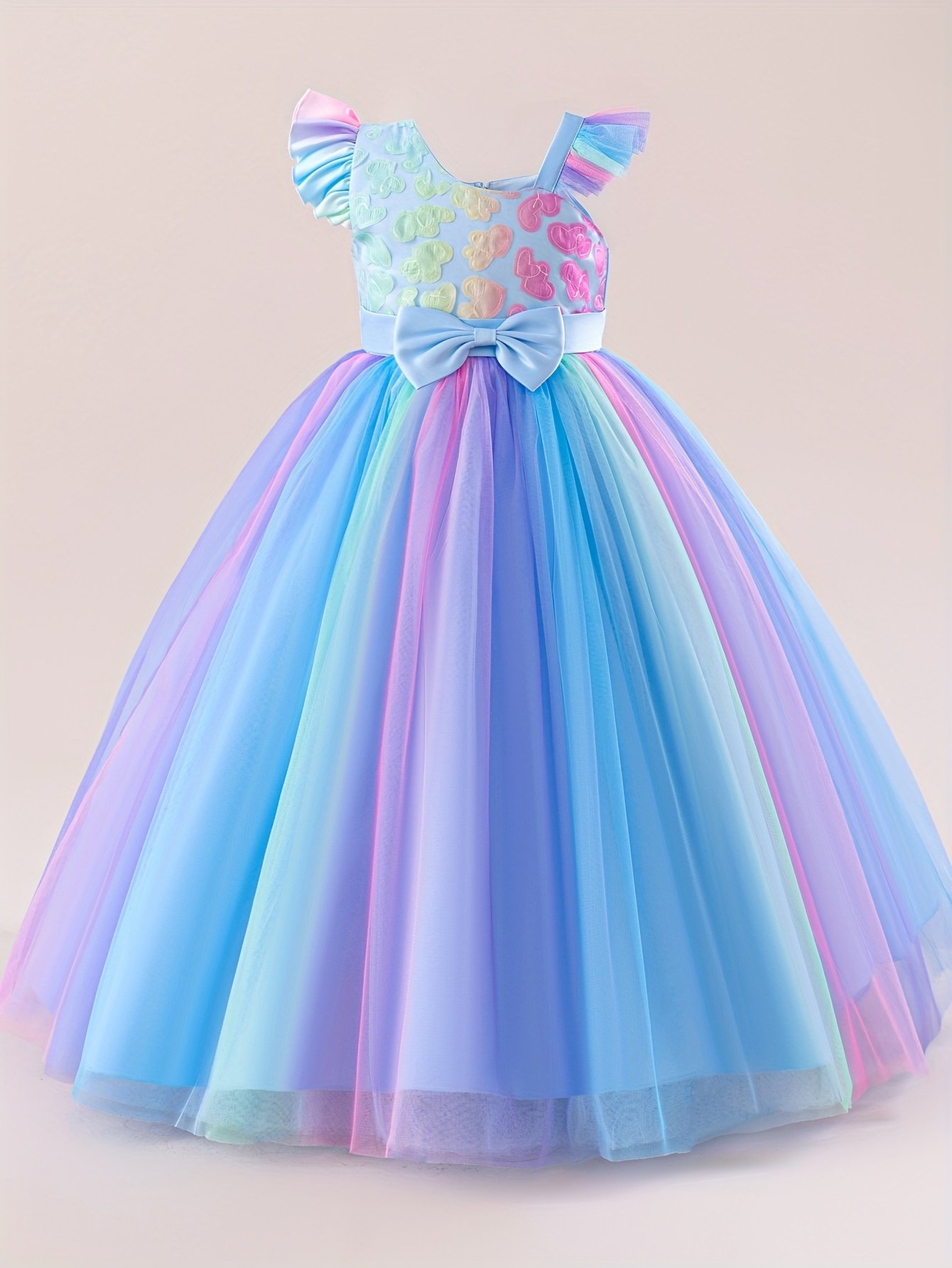 Girls’ Fairy Mermaid Dress with Flutter Sleeves, Gradient Rainbow Princess Long Evening Gown for Parties and Balls