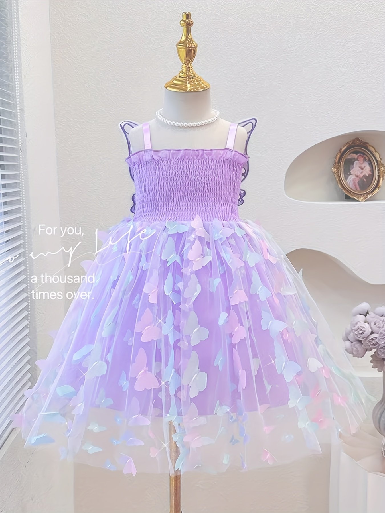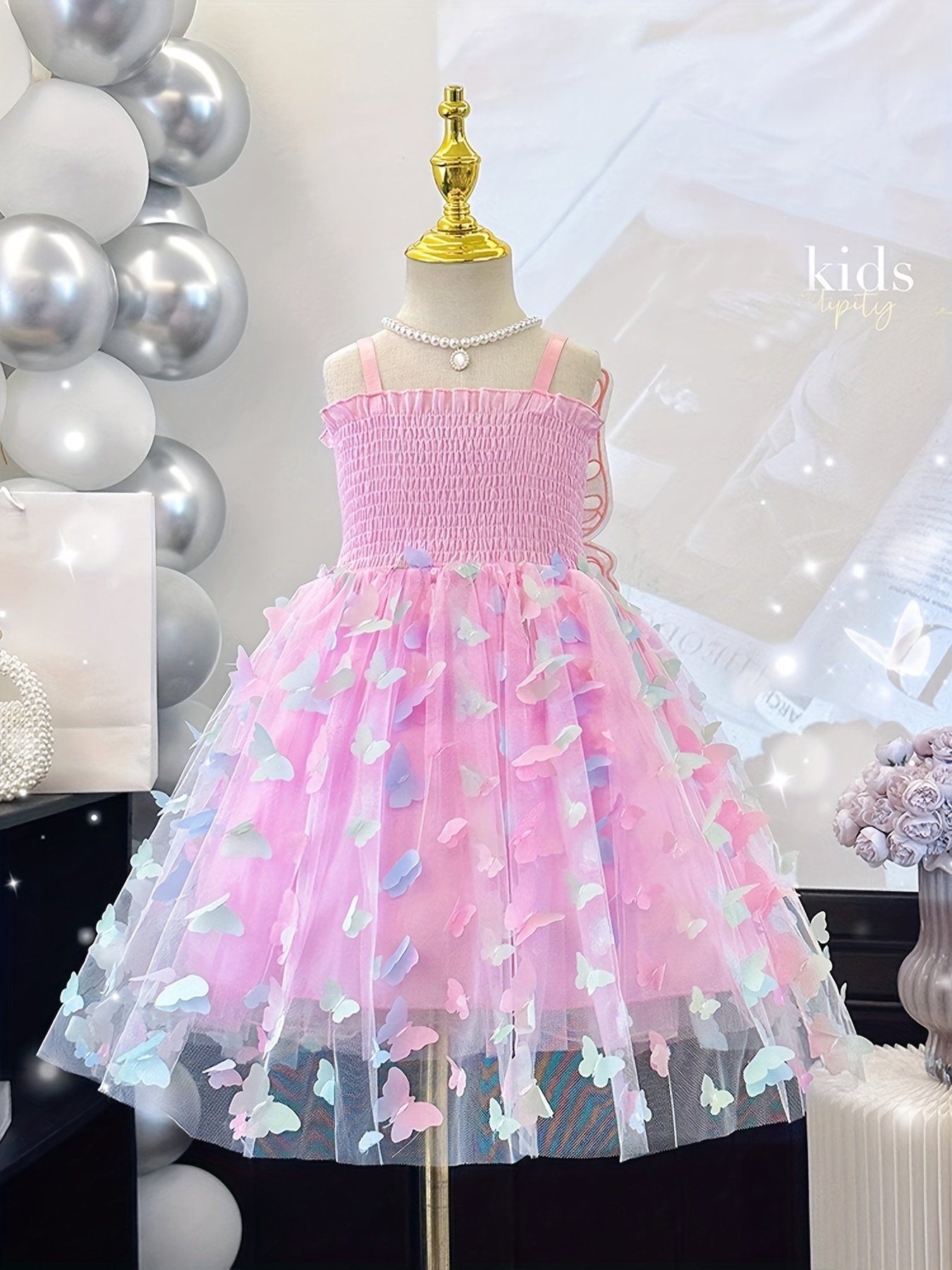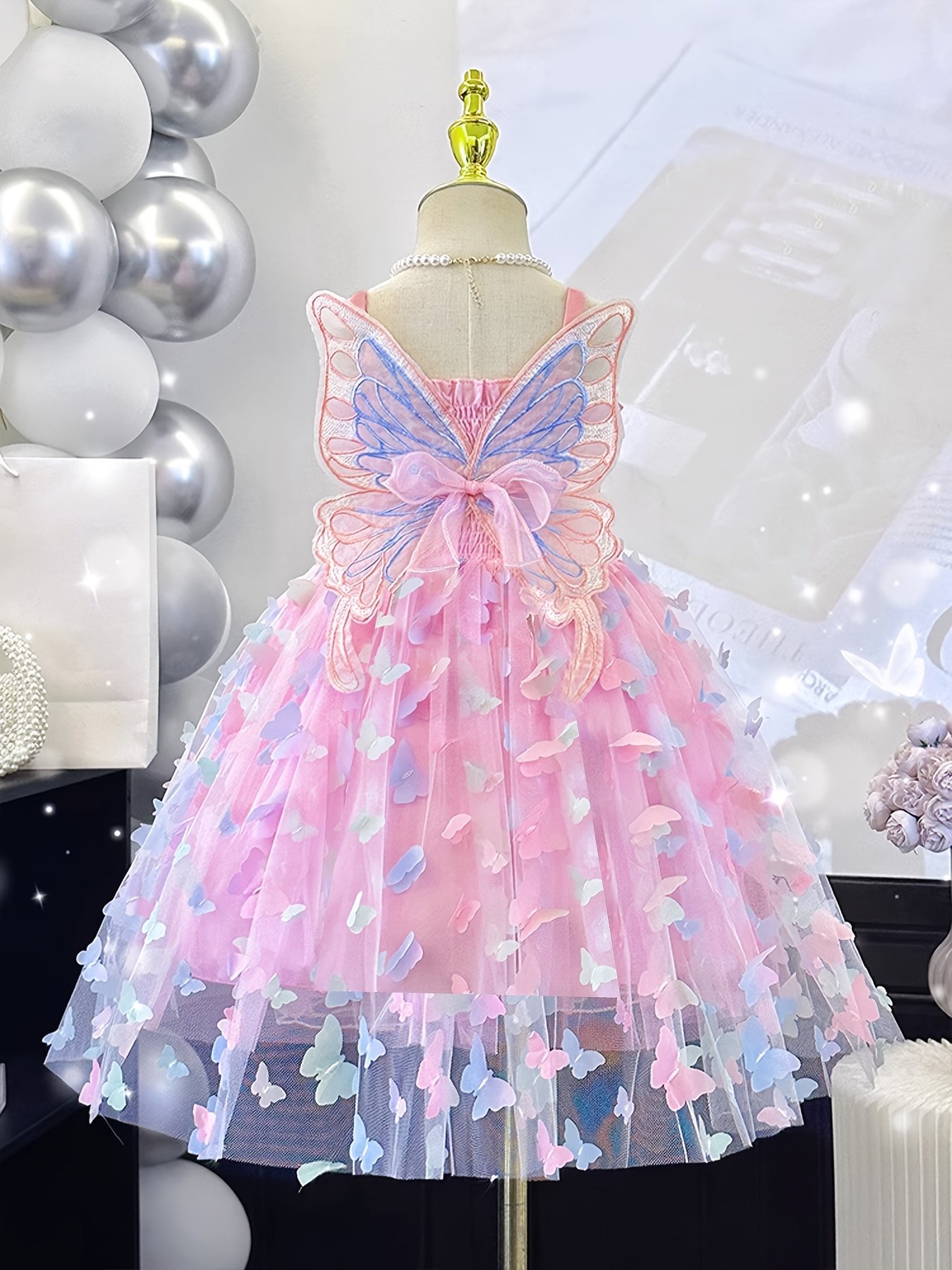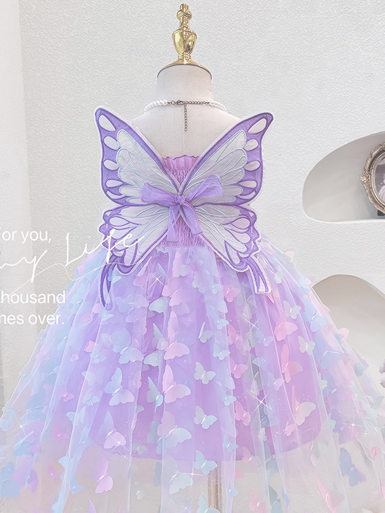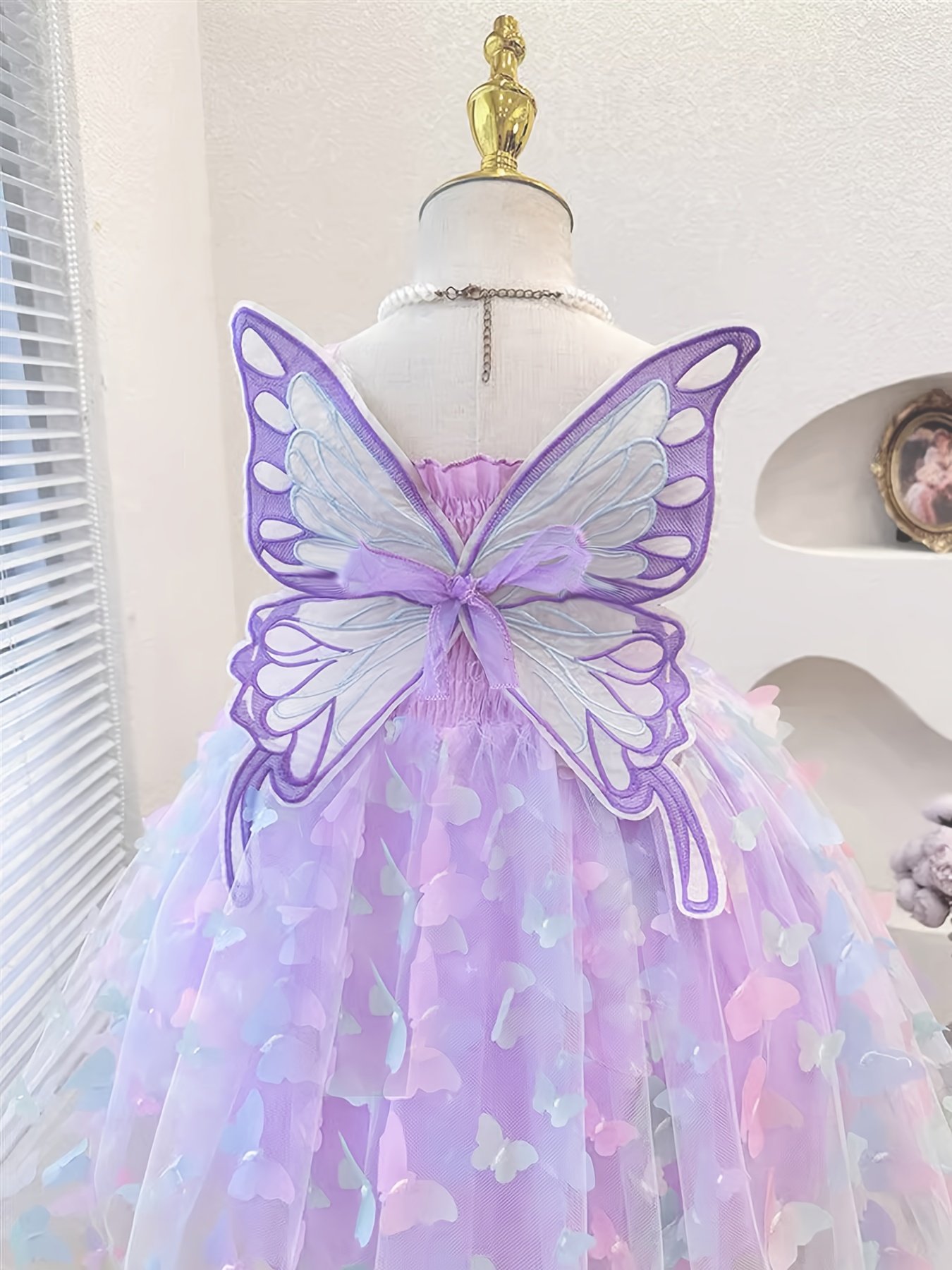 Girls’ Princess Party dress with Butterfly Decorations – Pastel Purple to blue ombre, Non-Stretchy Fabric, Sleeveless Formal performance outfit for Birthday, Wedding, Photo Shoot – Machine Washable & Kids Dress, Birthday Celebration, Playful Aline Silhouette, Layered Tulle Skirt, Young Performers