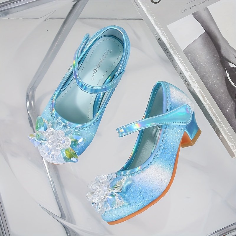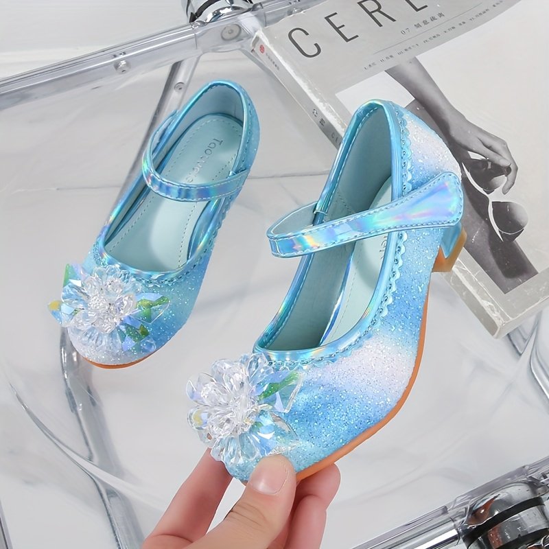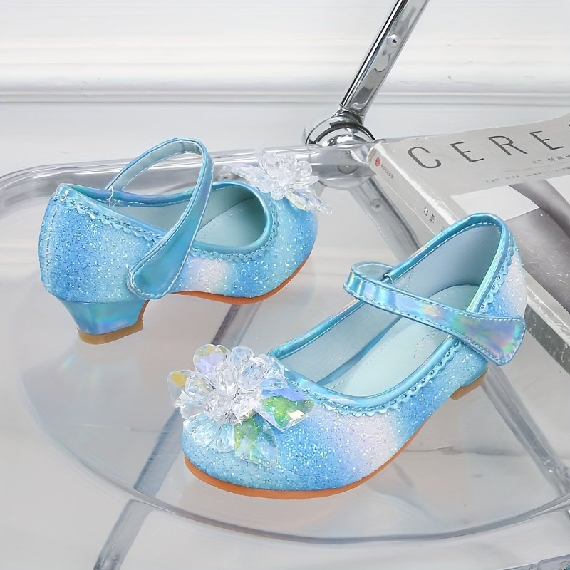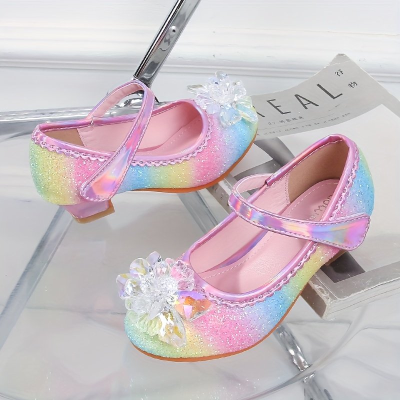 Girls’ Sparkly Mary Jane Shoes with Rainbow Glitter & Crystal Accents – Adjustable Closure, Comfortable Low-Top Design for Performances, Parties & Casual Attire, Performance Footwear | Princess Shoe Style | Durable Tpr Sole, Girls Shoes