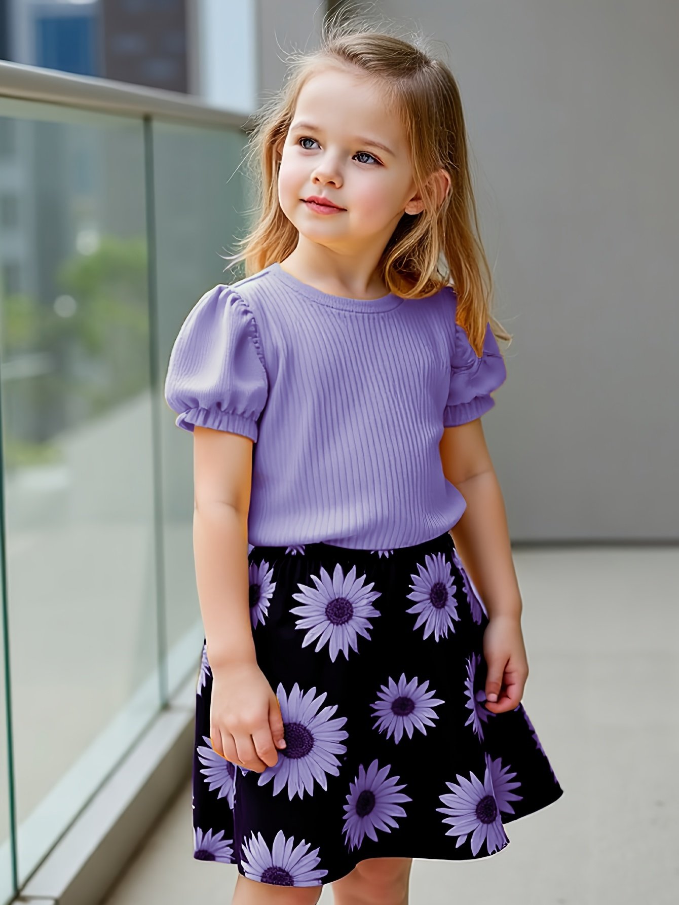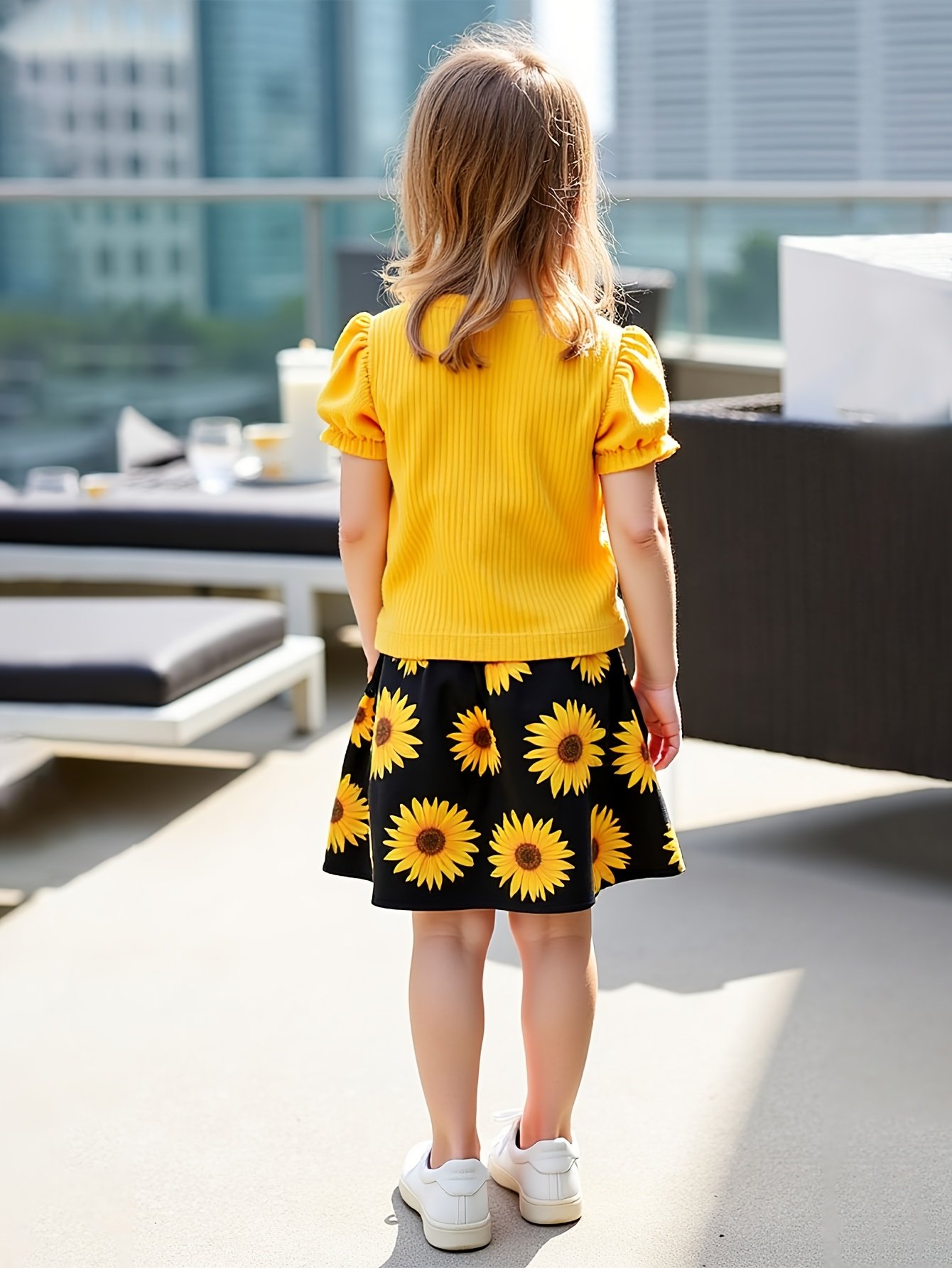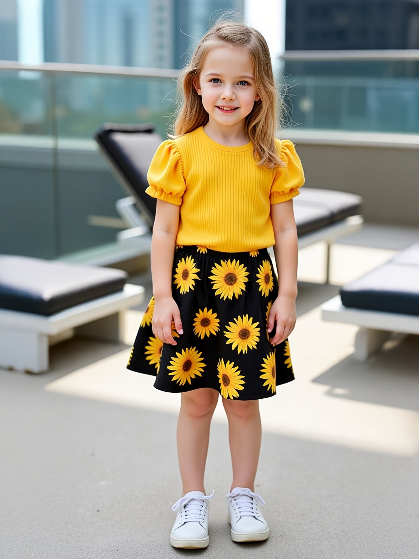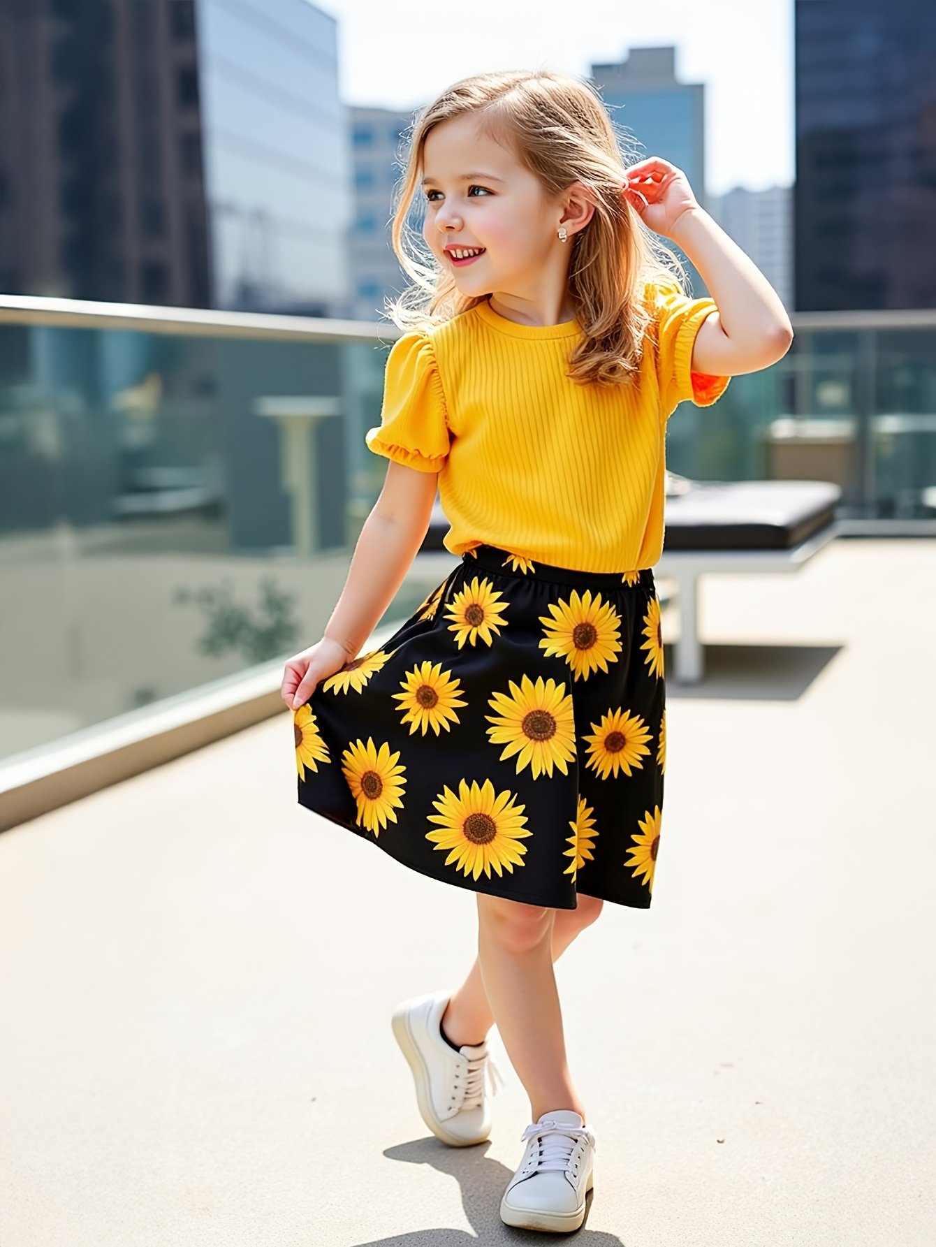 Be the first to review “Girls’ Sunflower Print Short Sleeve Top + Skirt Set, Summer Two-Piece Outfit for Everyday Wear/Vacation/Party, Suitable for Children Aged 3-10” Cancel reply