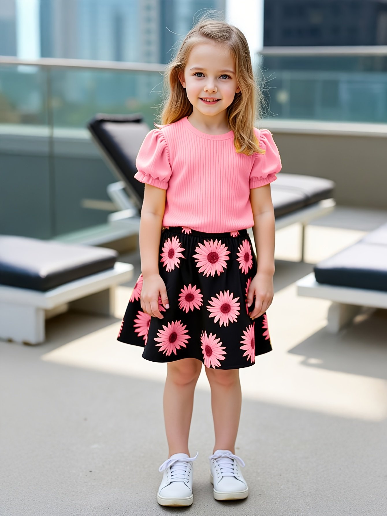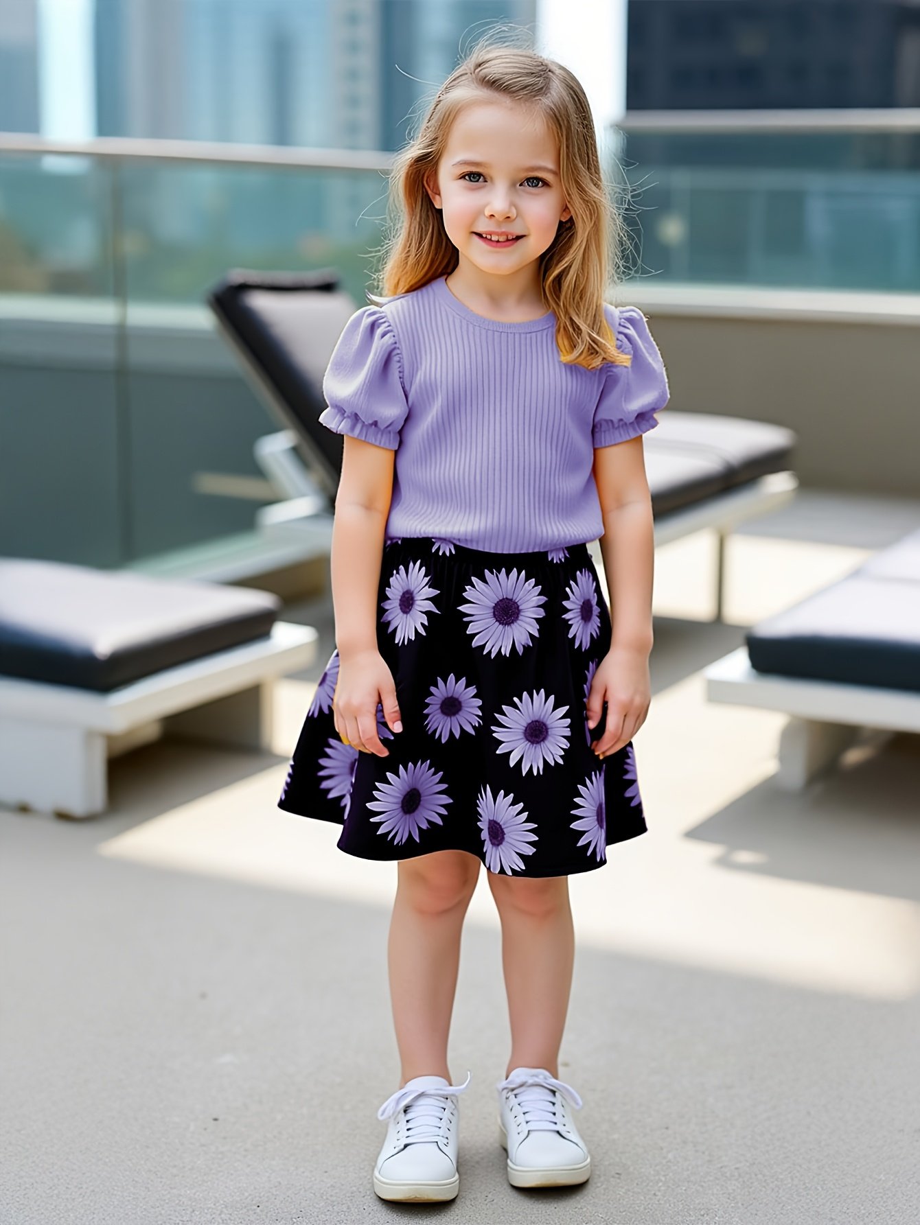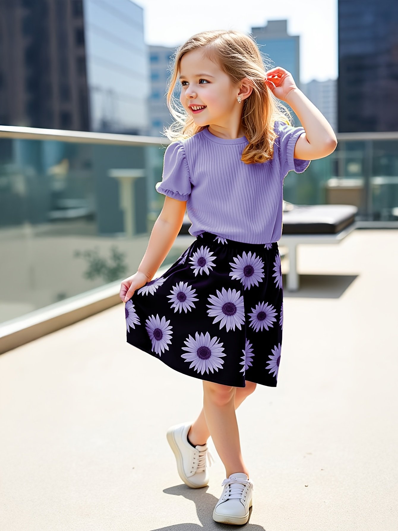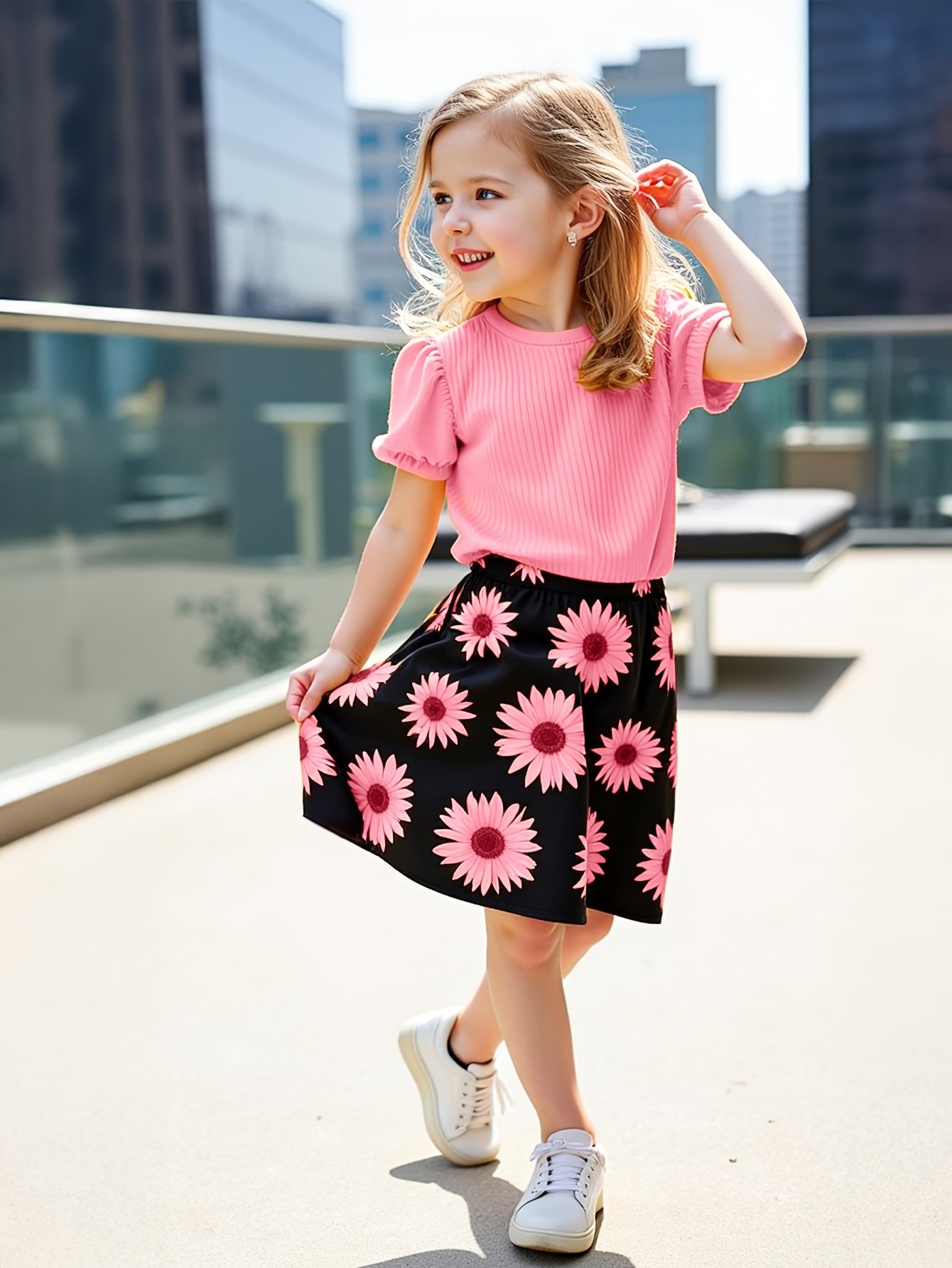 Be the first to review “Girls’ Sunflower Print Short Sleeve Top + Skirt Set, Summer Two-Piece Outfit for Everyday Wear/Vacation/Party, Suitable for Children Aged 3-10” Cancel reply