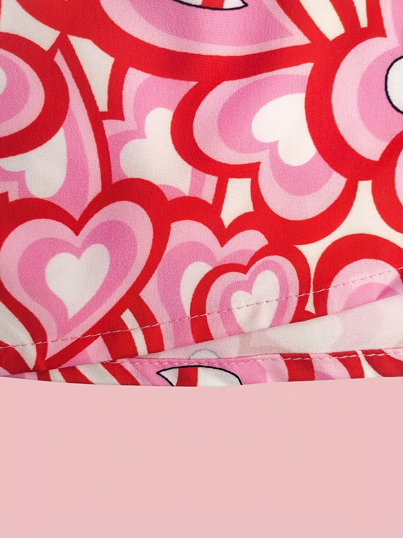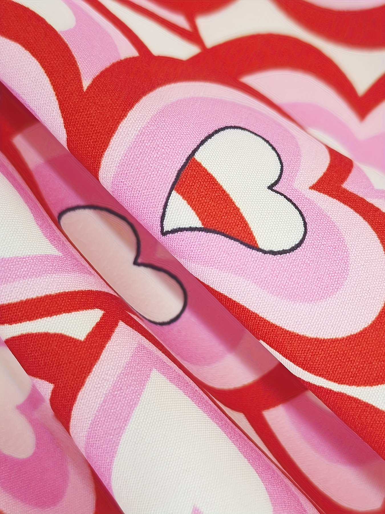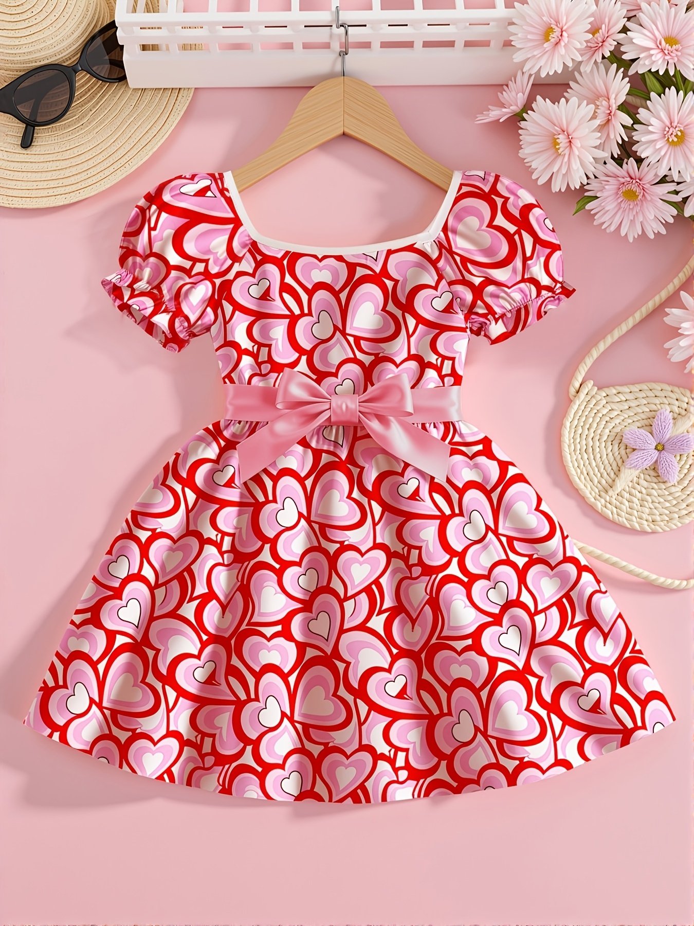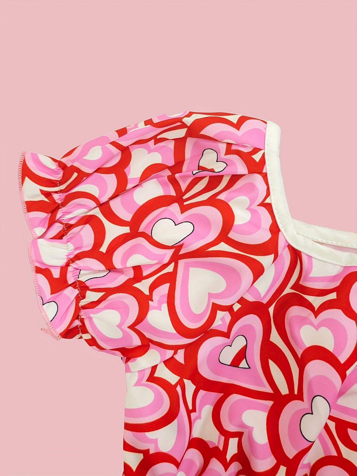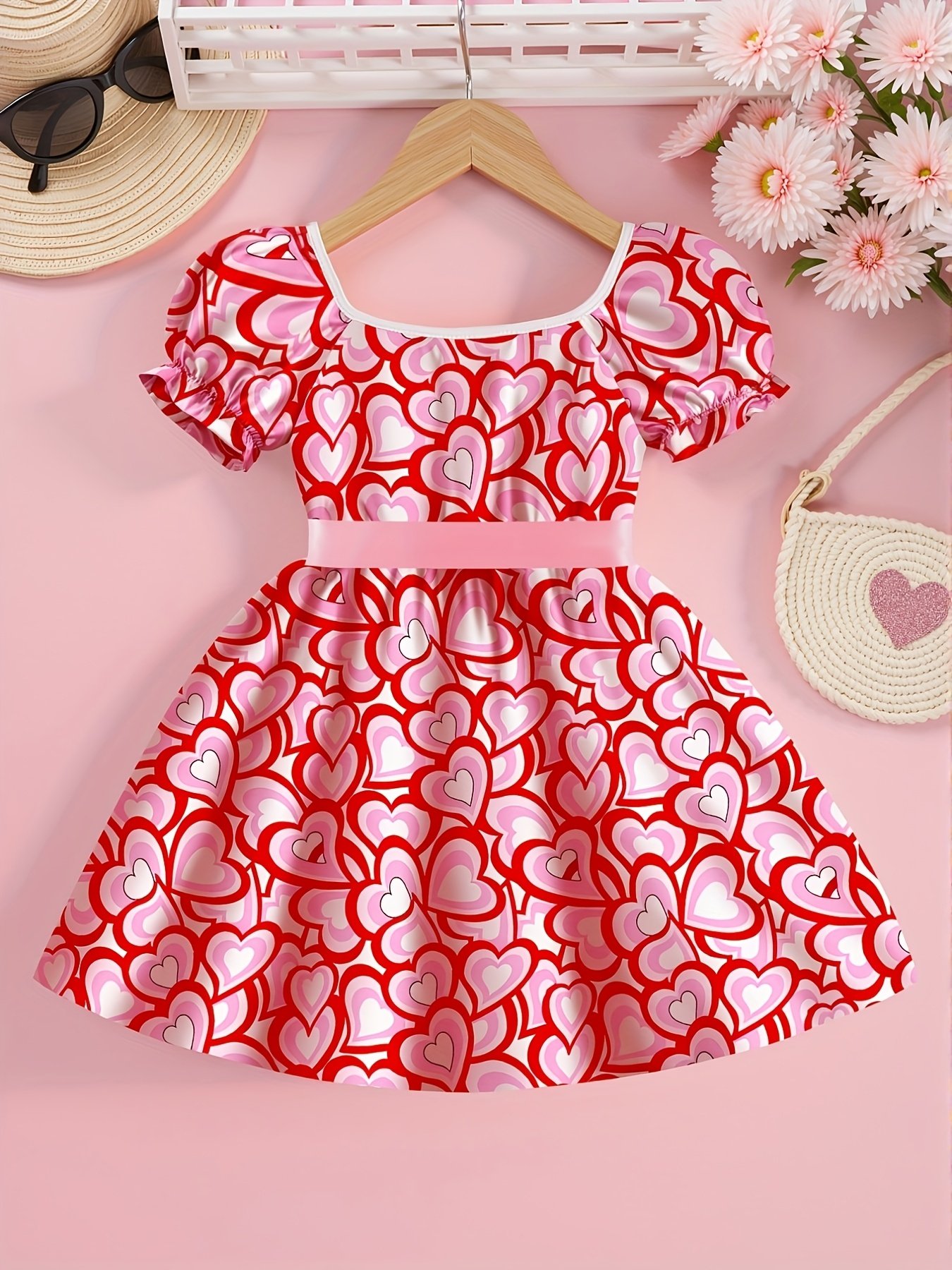 Women’S Fashion Heart Print Dress – Red and White, Short Sleeve, Round Neck, Summer Dress for Girls, Casual Party Attire, Casual Party Attire|Playful Print Design|Nonstretch Fabric