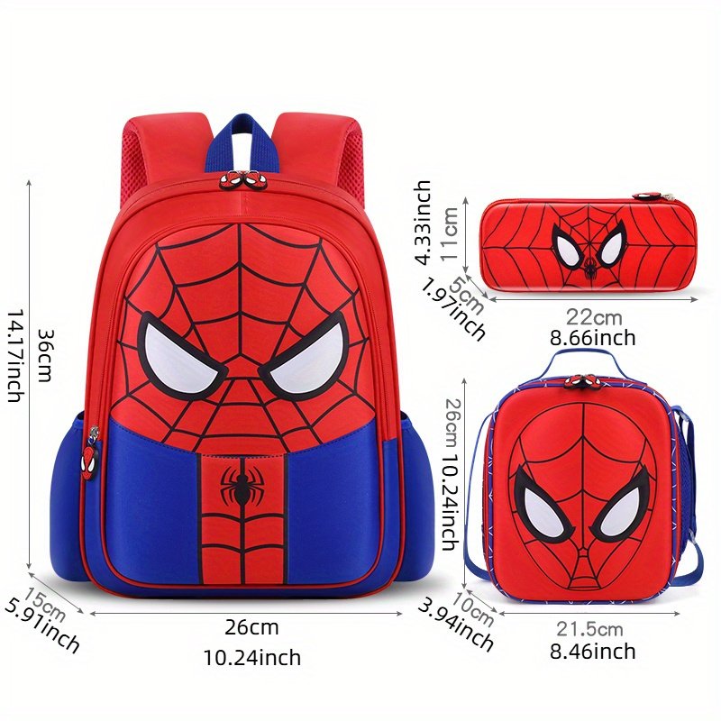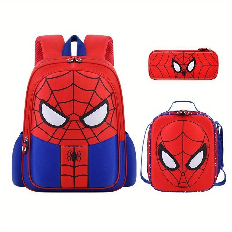 3pcs/set MARVEL Spider Man Theme Dual-stap Backpack Set, Red, EVA Material, Creative Web Design, Lightweight, Large Capacity, with Lunch Bag & Pencil Case, for Outdoor Travel, Commuting, Camping Activity