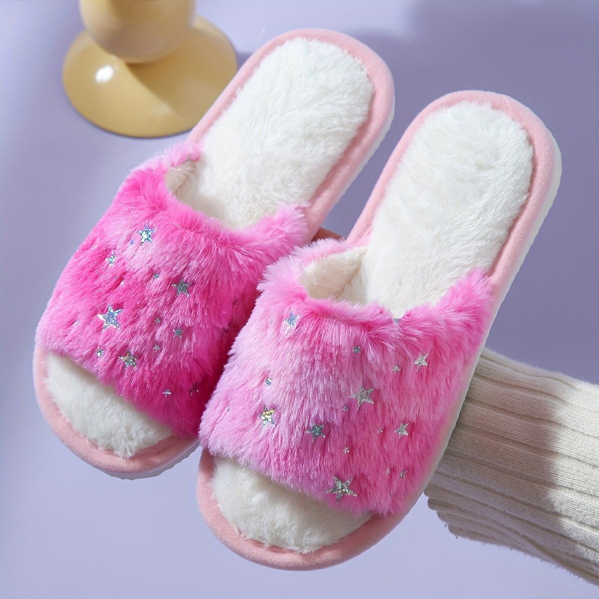 Be the first to review “Cozy Plush Star-Patterned Slippers for Couples – Soft Pink Indoor House Shoes with White Fluffy Cuffs, Open-Toe Design, EVA Sole, Hand Washable, All-Season Comfort” Cancel reply