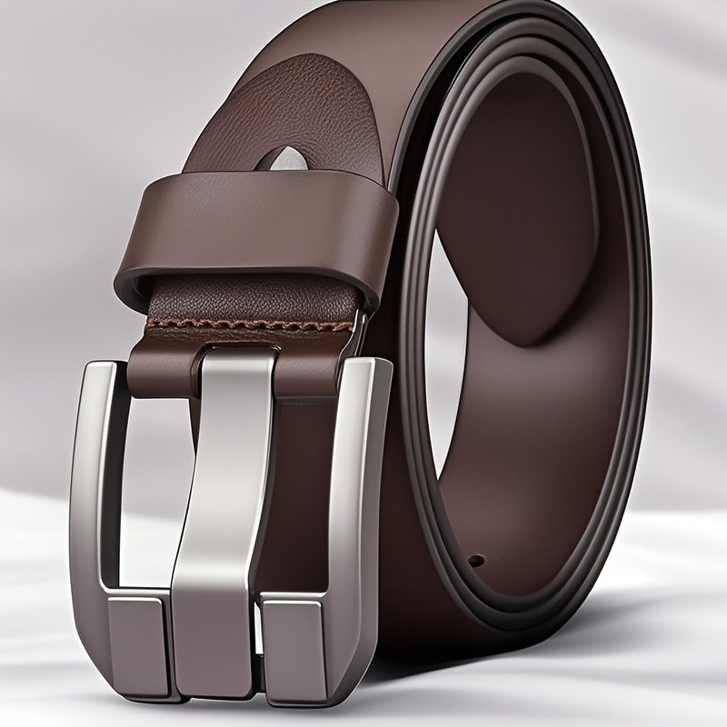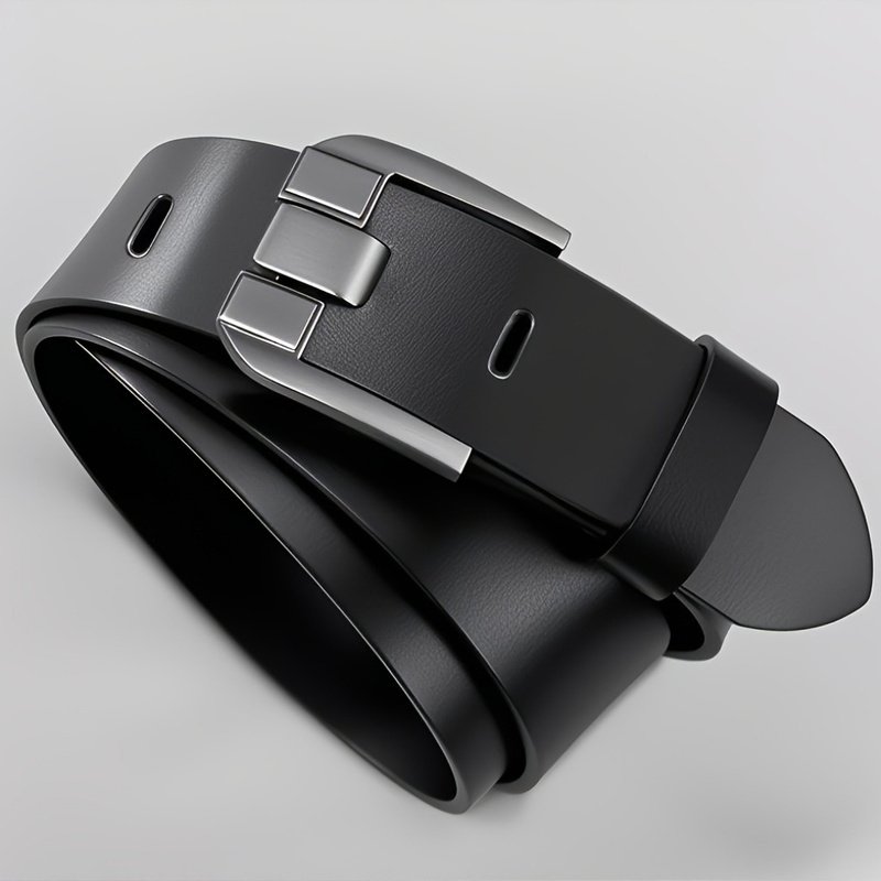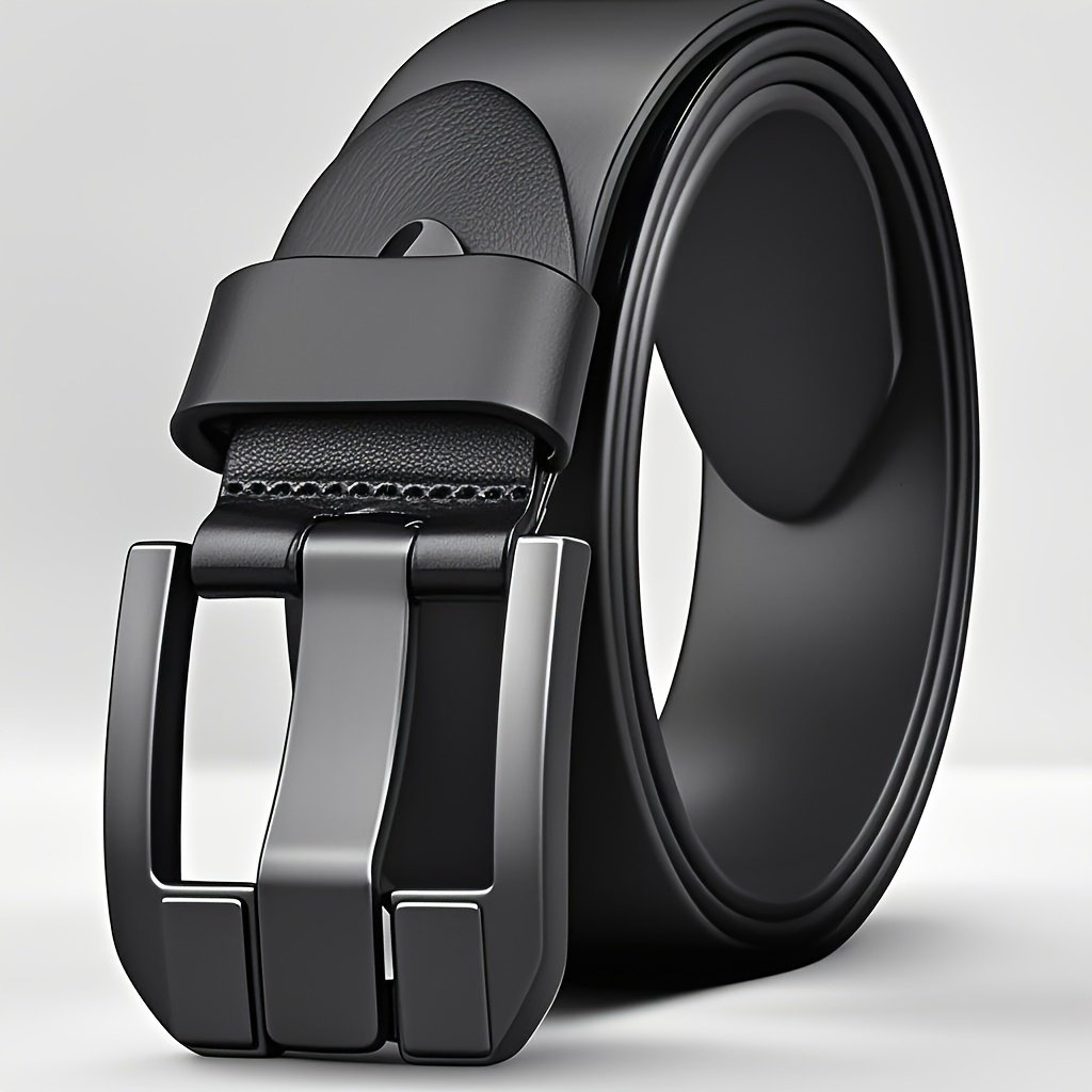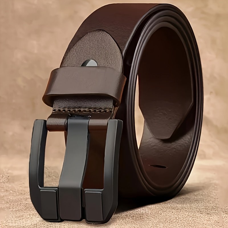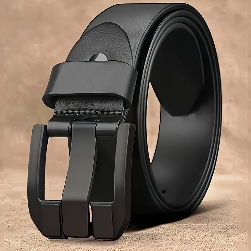1pcMen’s Genuine Leather Belt with Alloy Buckle – Stylish Black Design, Medium Width Suitable for Both Business And Casual Wear, Sweat-Resistant Technology, Perfect for Men with Larger Waist Sizes, Suitable for All Seasons, Accessory forSporty Jeans