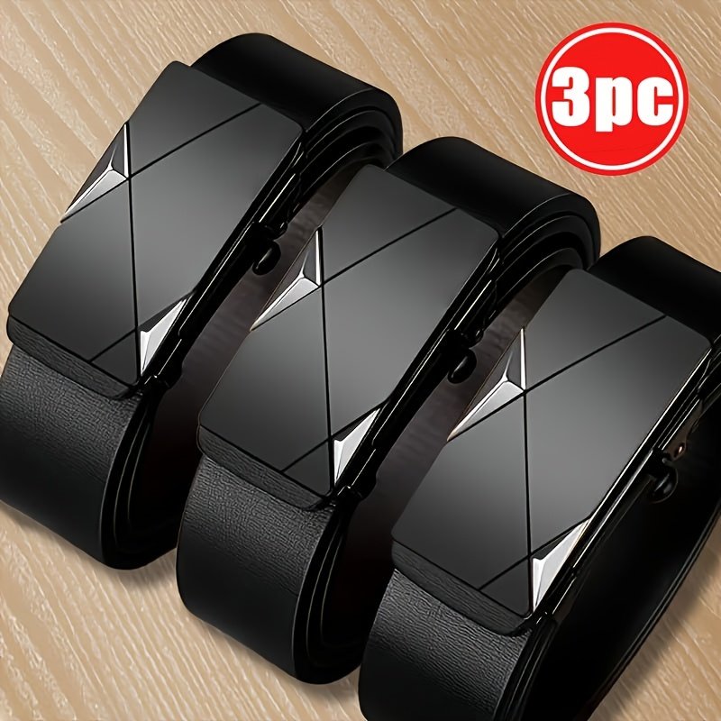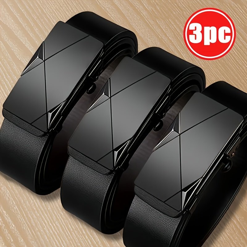 3pcs Men’S Automatic Buckle Belts – Black PVC, Non-Textile, Large Size, Business Casual Style, No-Loop Design, 2024 New Collection, Business Casual Belts | Sleek Belt Design | Durable PVC Belts
