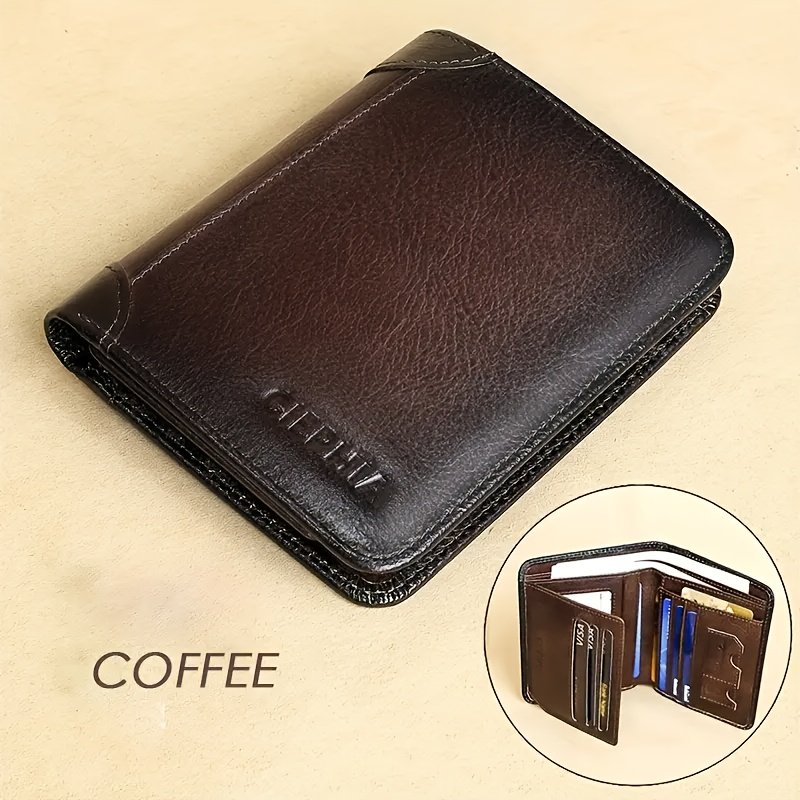 A Genuine Leather Men’S Wallet with Three Folds, Made from Top-Grade Cowhide, Featuring a Vintage Design And a Multifunctional Credit Card Holder with Two ID Windows, Perfect As a Gift for Men.