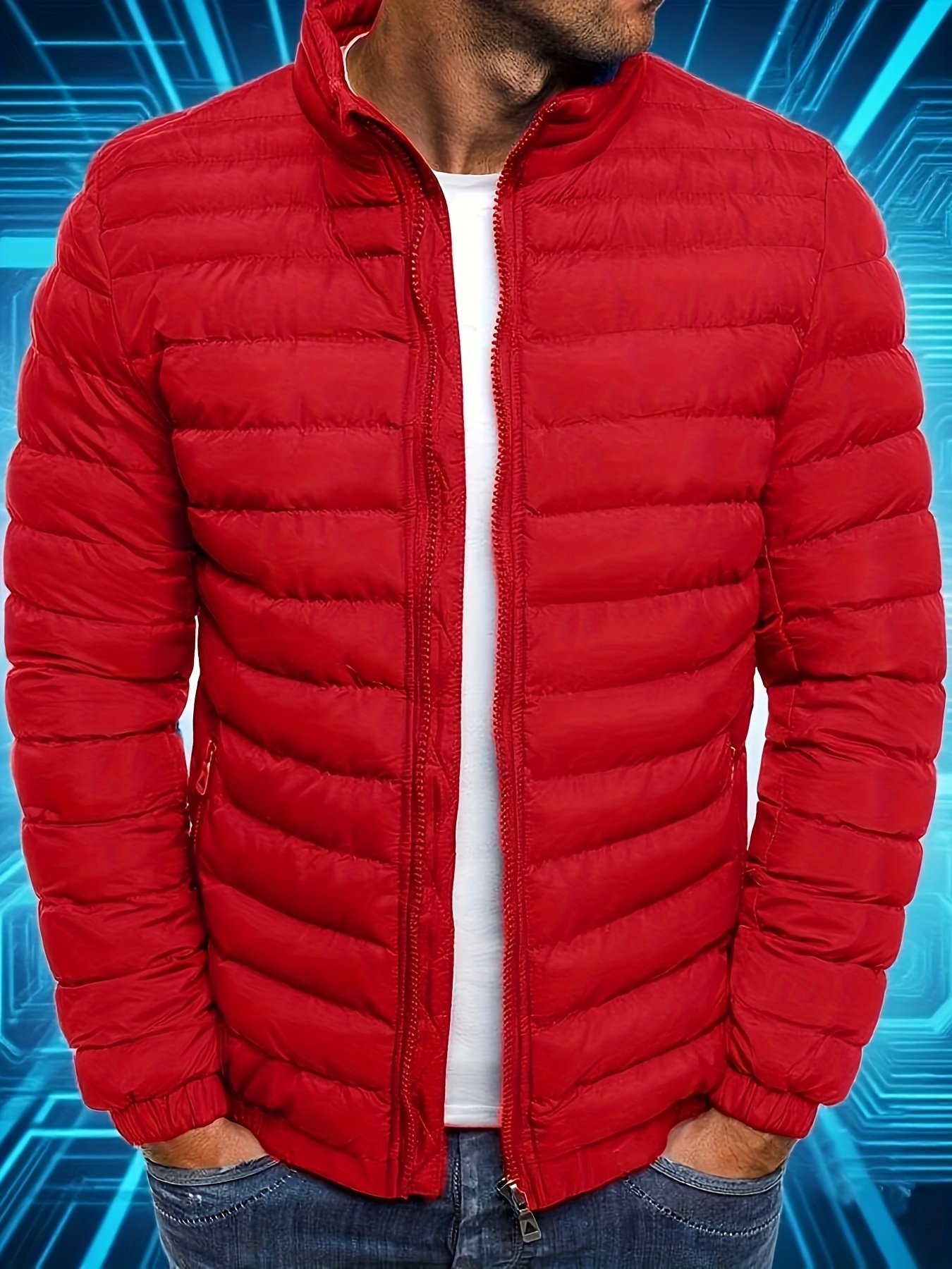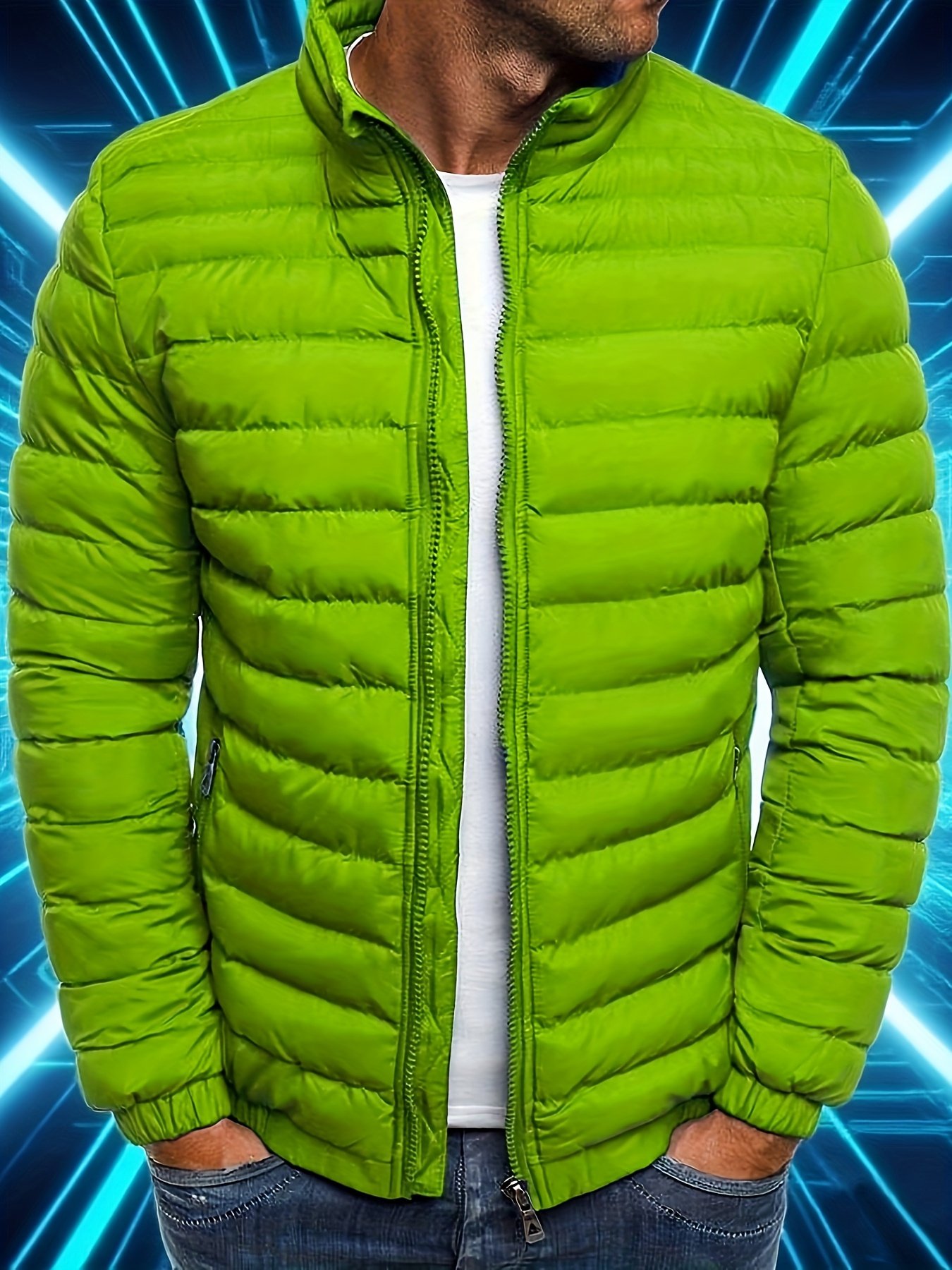 1pc Men’S Winter Jacket – Heavy-Duty Polyester Coat with Zipper Closure, Stand Collar, Long Sleeves – Olive Green Outerwear for Everyday & Formal Events – Easy-Care Non-Stretch Fabric – Ideal for Office, Travel, Casual Outfits, Winter Coats, Office Wear, Classic Design, Durable Construction, Office Professionals