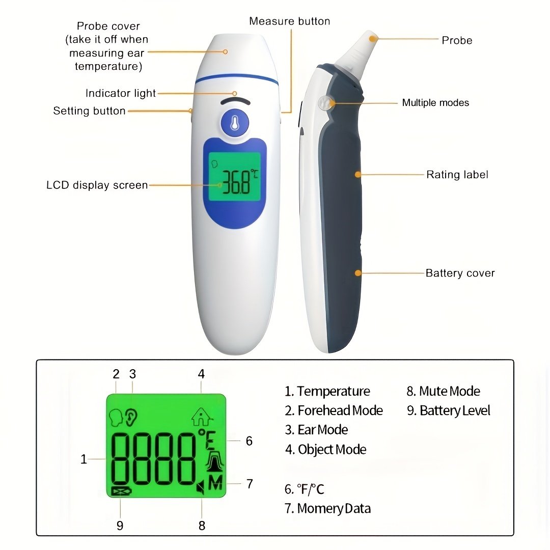 Be the first to review “2-in-1 Ear and Forehead Thermometer – High-Precision Medical Grade Infrared, Non-Contact 1-Second Measurement, Multi-Mode Intelligent Calibration, Silent Night Mode, Memory Storage, Ideal for Home, Hospital, Travel Use (Battery Not Included), Travel Thermometer | Modern Thermometer | Plastic Body, Forehead Thermometer” Cancel reply
