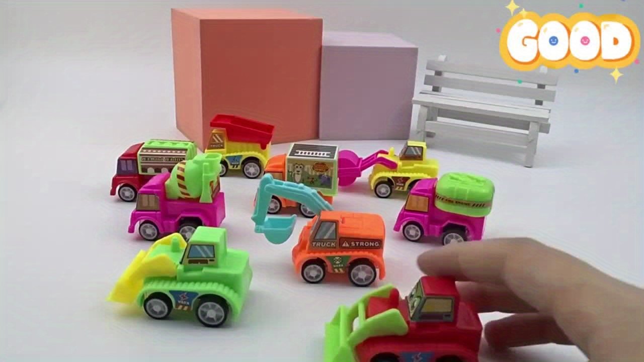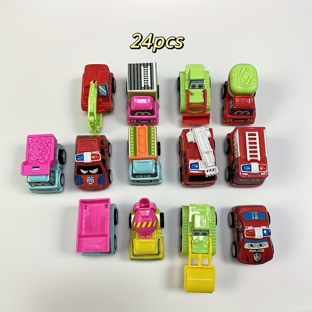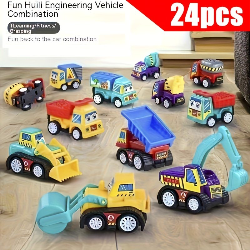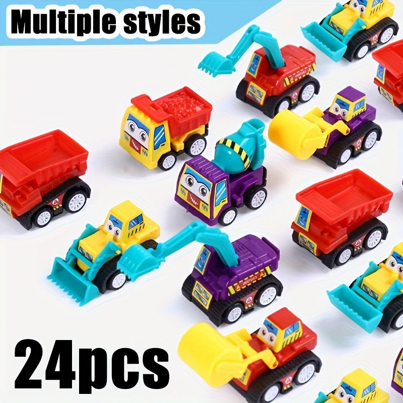 24 random mini cartoon power engineering vehicles, durable plastic construction trucks and cars, various styles, children’s party gifts, birthday gifts, Christmas and Halloween gift sets