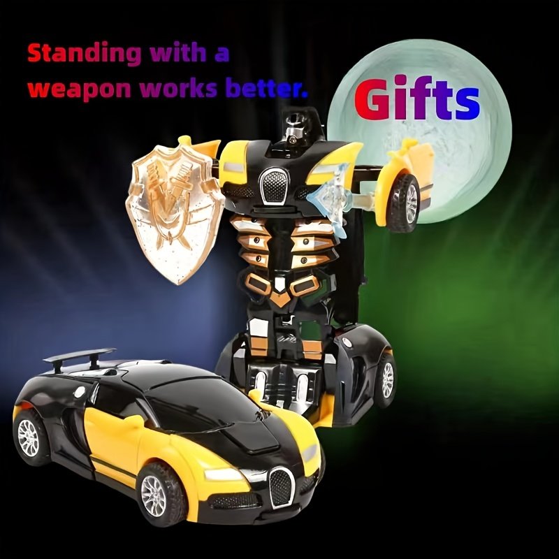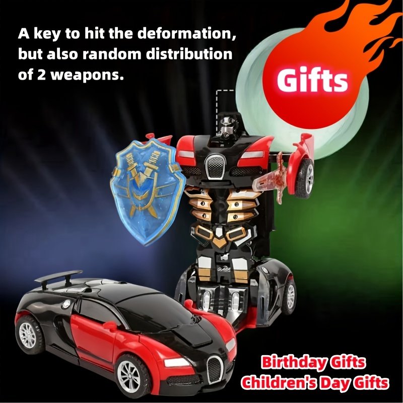 Children’s Day Gift Toy Racing Car for Children One-Button Transformation Toy Inertial Power Impact Deformation Toy Drop-resistant Child Boy Car Model Can Switch Forms Car Race, No Battery Required, Two Tools Are Randomly Sent Christmas Gifts