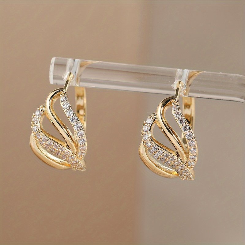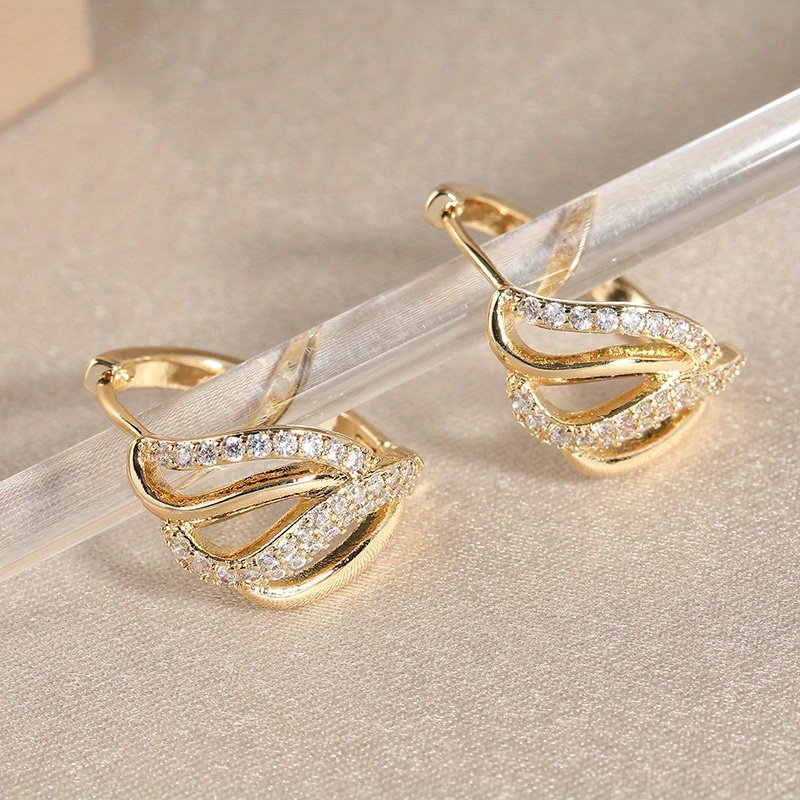 1 Pair Elegant Classic Copper Hoop Earrings with Synthetic Cubic Zirconia, KC Golden Plated – Ideal for Daily Wear & Parties, Perfect Gift for Birthdays and Holidays, Party Hoop Earrings|Elegant Jewelry|Cubic Zirconia Hoops, Earrings for Wome