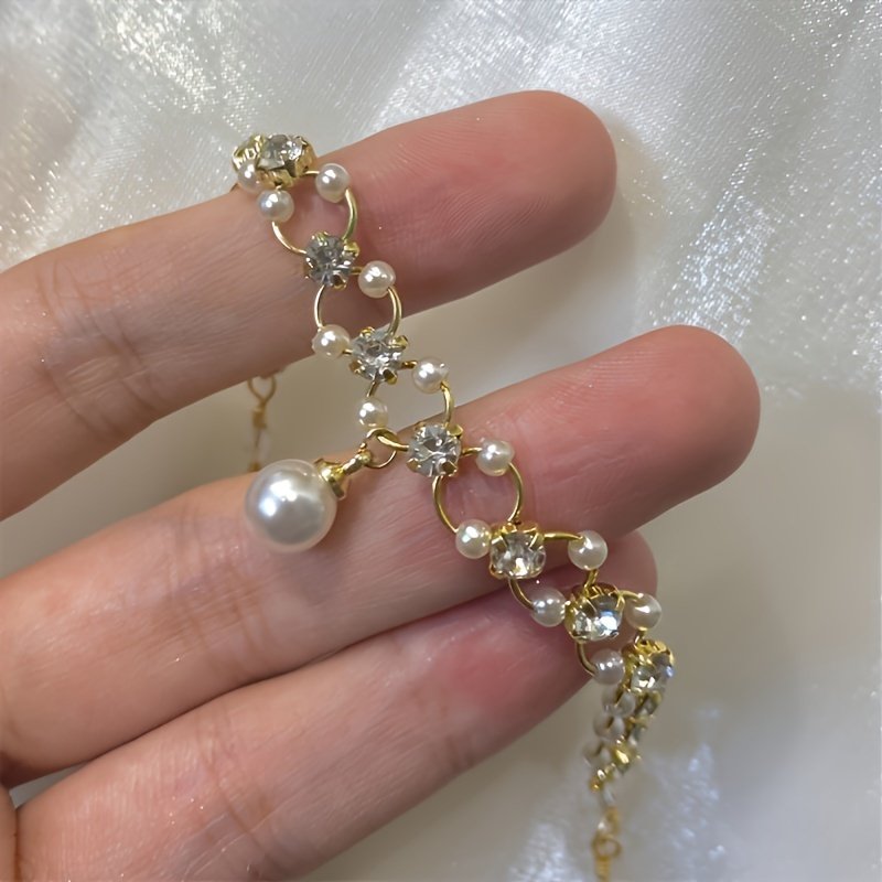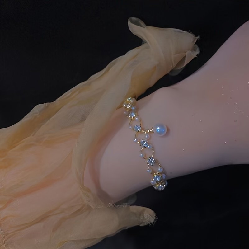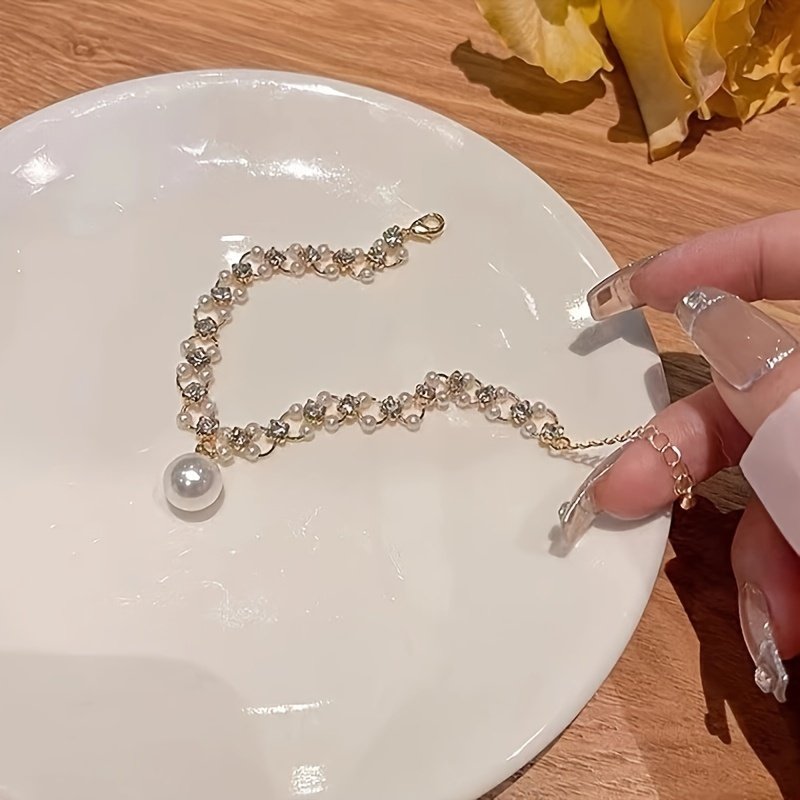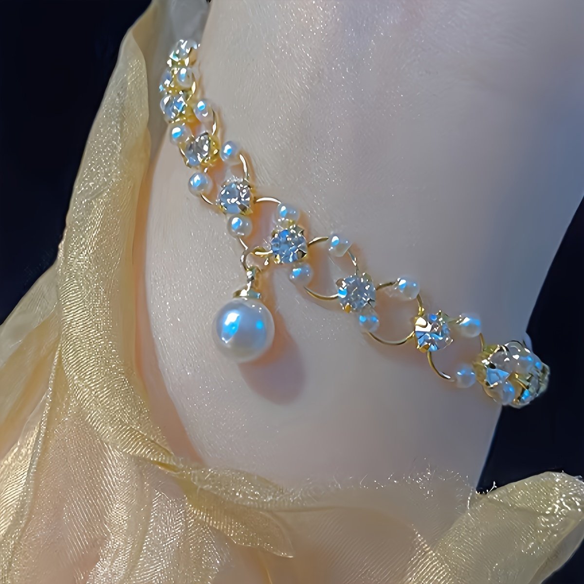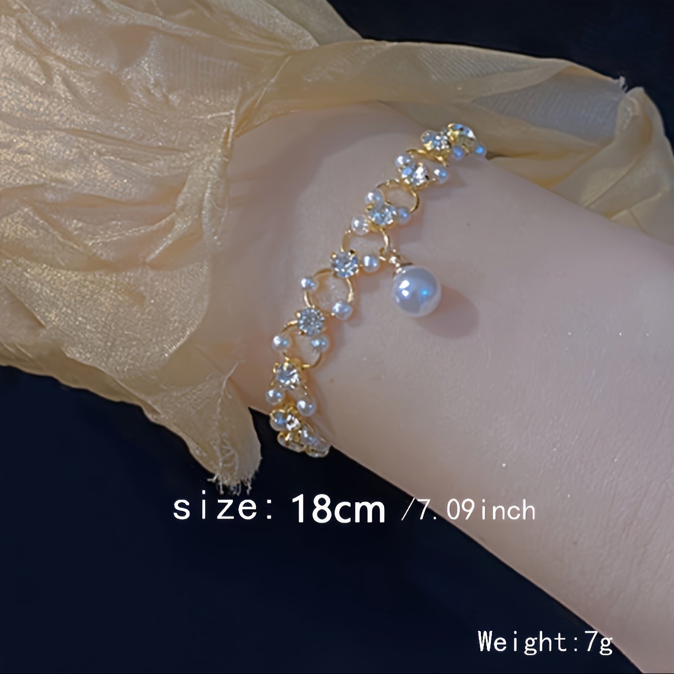 1pc Light Luxury Golden-Tone & Imitation Pearl Bracelet – Elegant Zinc Alloy Chain with Resin Pendant, Sparkling Accents for Weddings, Banquets, Festive Events – Women’s Jewelry Gift for Ages 15+