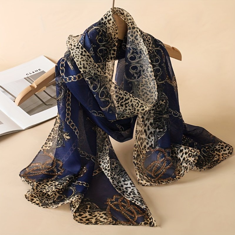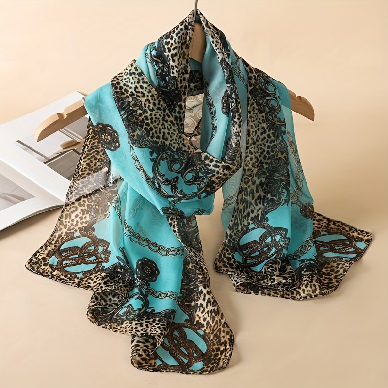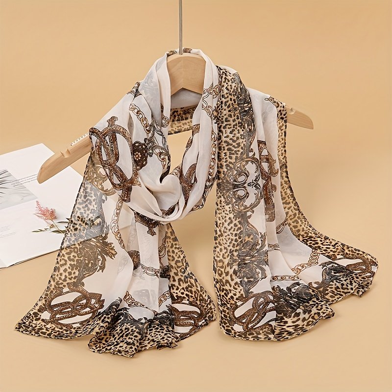 1pc Elegant Leopard & Floral Print Chiffon Scarf Hijab – Breathable Lightweight Shawl for Women, Bohemian Style, Perfect for Daily Wear, Machine Washable, Pink & Beige Design, Daily Wear Accessory | Bohemian Style Scarf | Lightweight Shawl