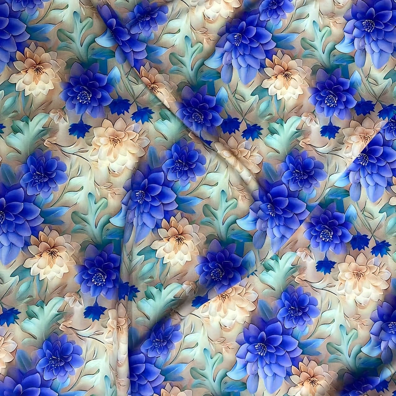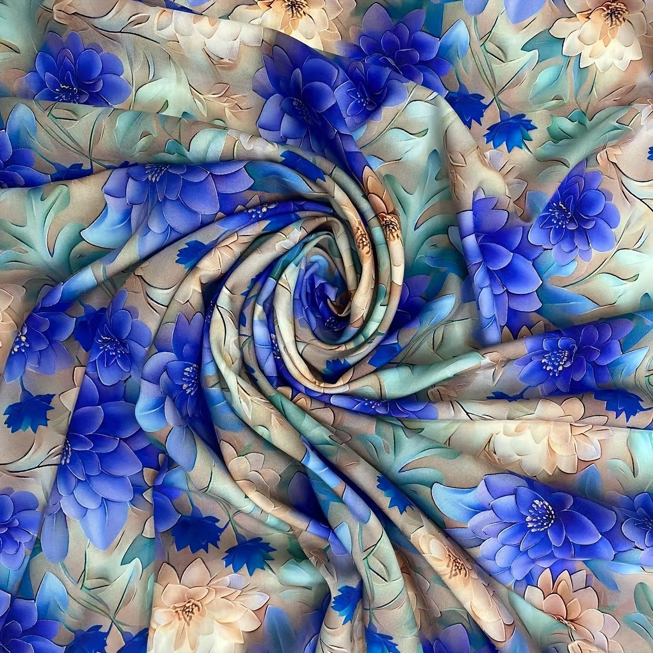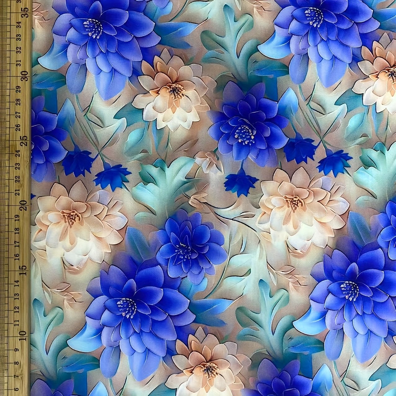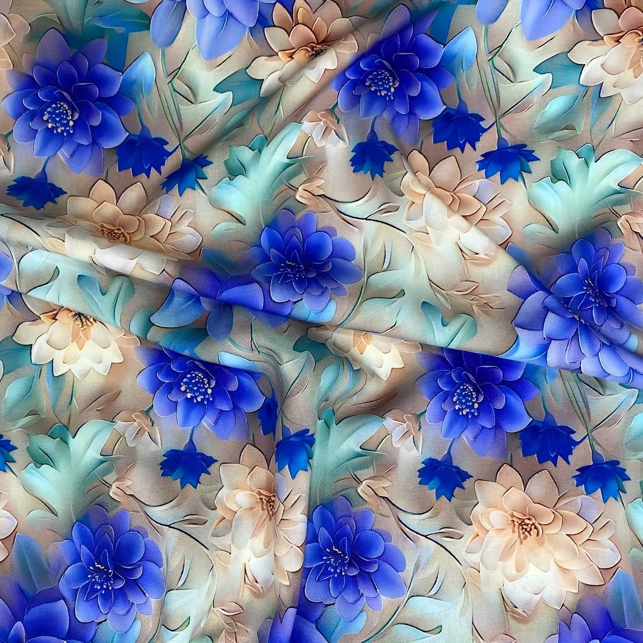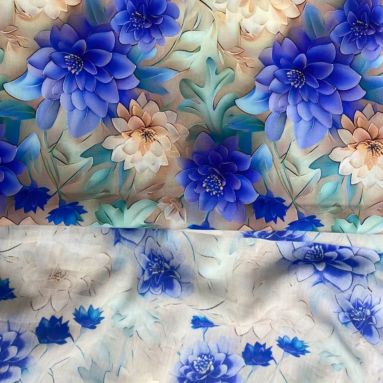 1pc Summer Pre-Cut 3D Floral Fabric – Vibrant Blue & Beige Handmade DIY Material, Lightweight Polyester for Cheongsam Dresses, Machine Washable, 200cm x 1.45cm