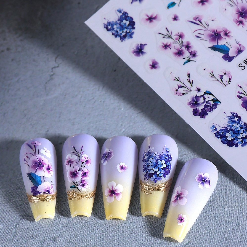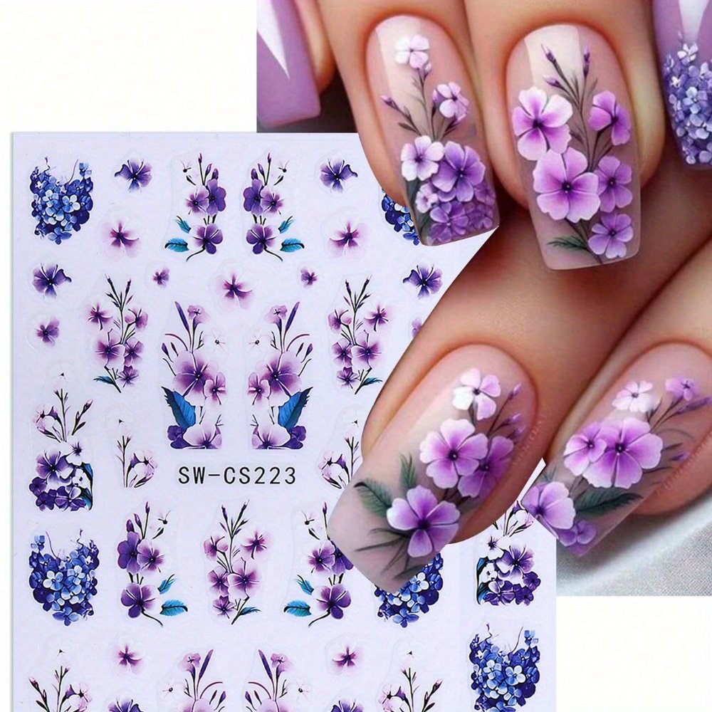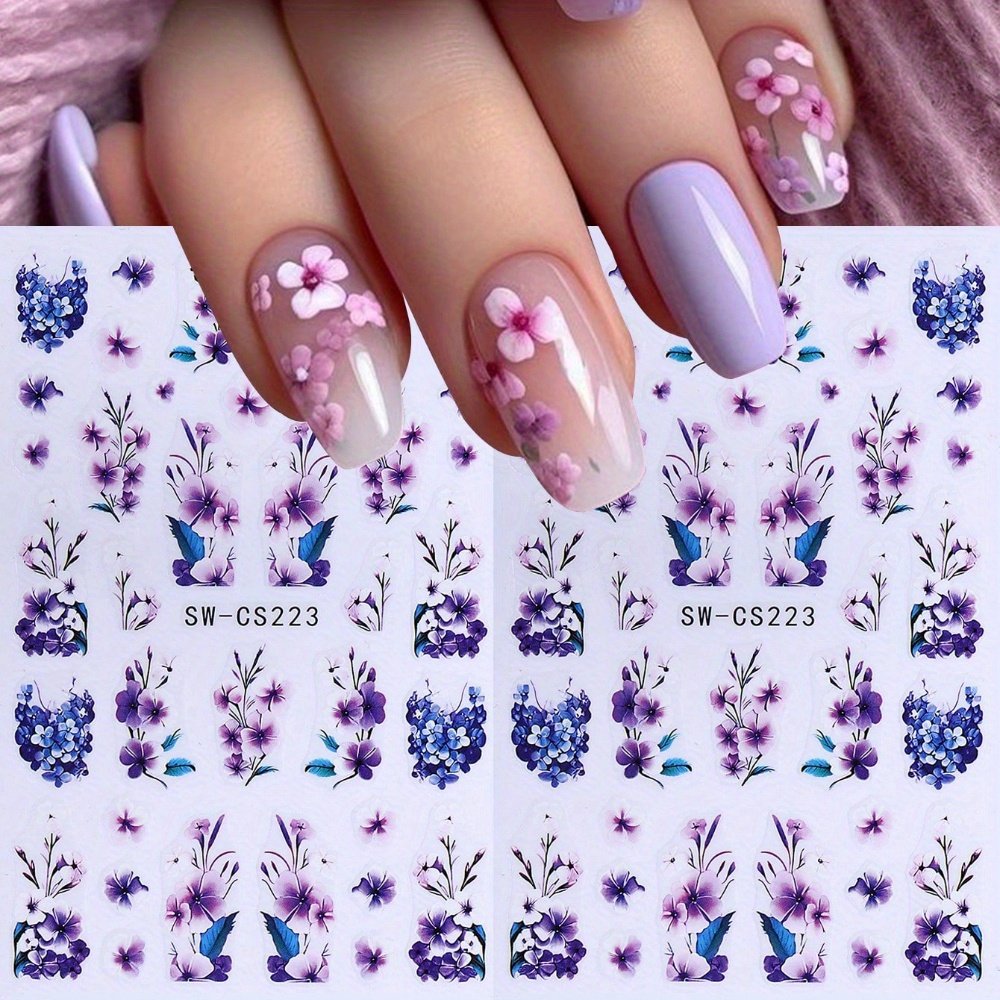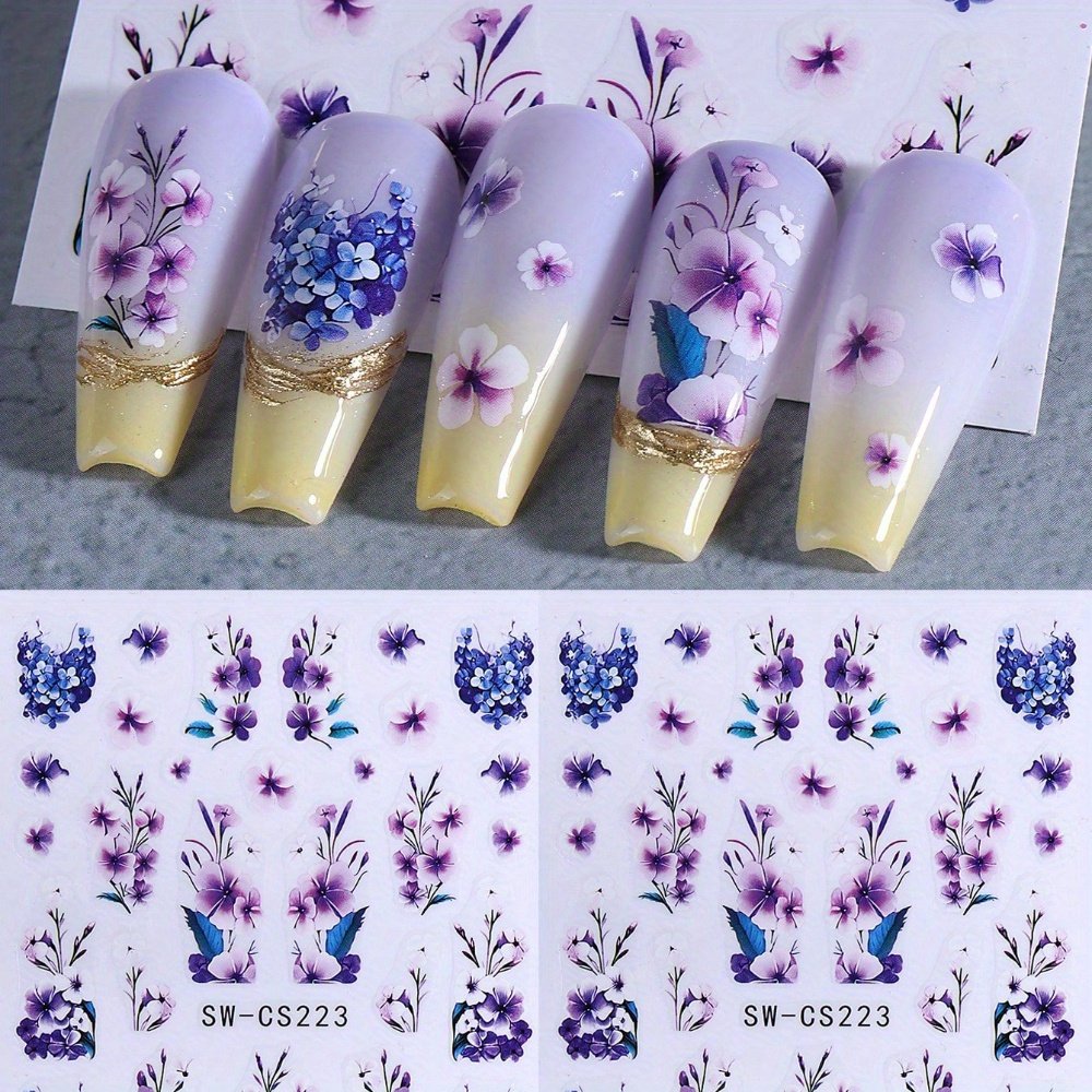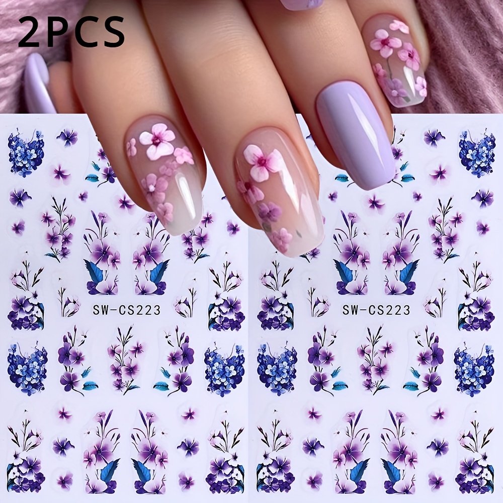 2pcs Purple Hydrangea Flower Nail Art Stickers – 3D Self-Adhesive Vine Designs for DIY Manicure, Spring & Summer Decorations for Home or Salon, Easy Application, Nail Salon Decor | Spring Summer Design | Selfadhesive Stickers