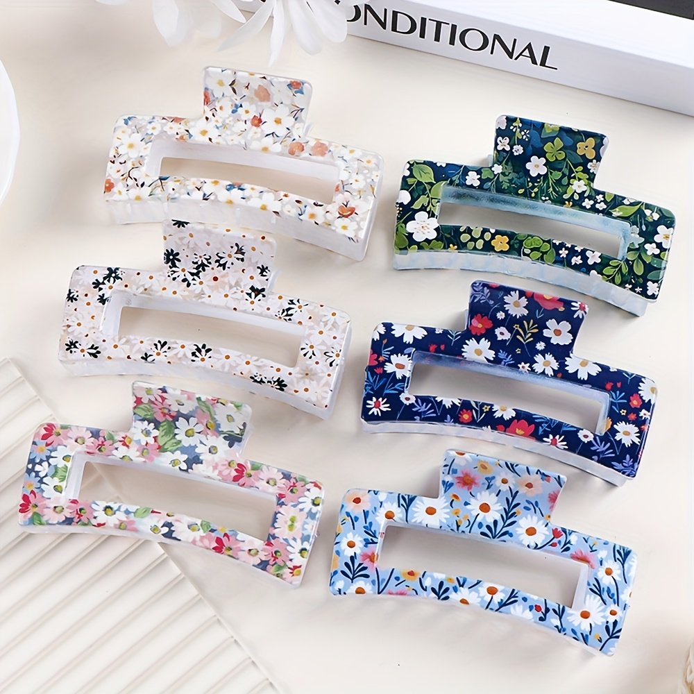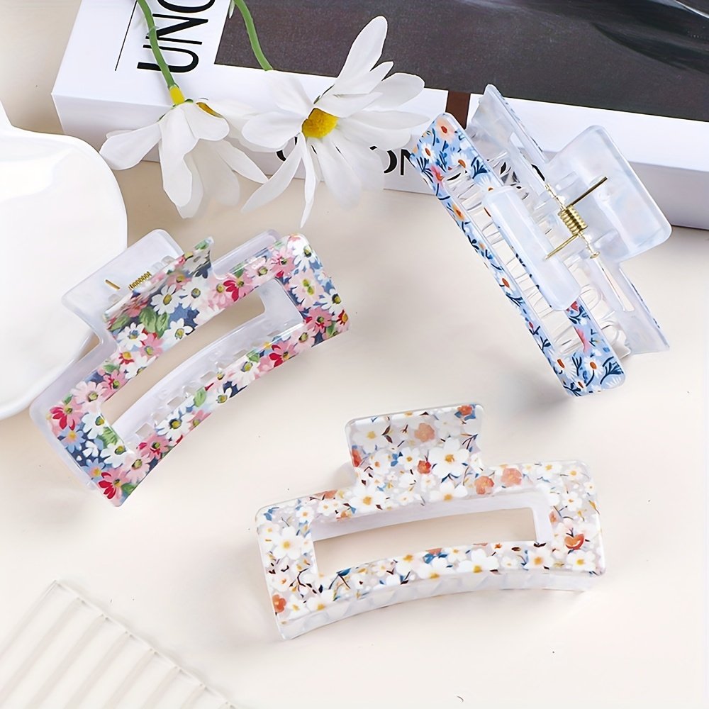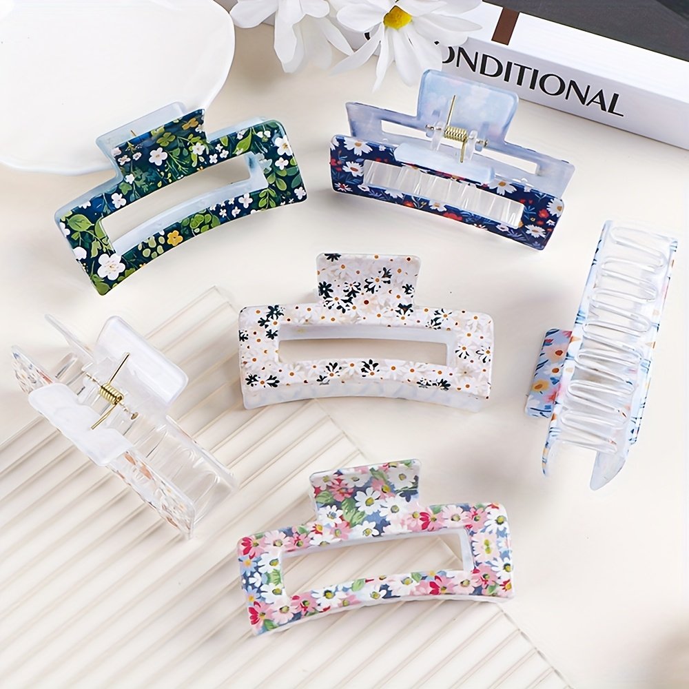 6pcs/3pcs Elegant Retro Printed Hair Claw Clips, Square Shark Clips, New Spring And Summer Collection, High-end, Fashionable, And Stylish Hair Accessories for Women’S Hai