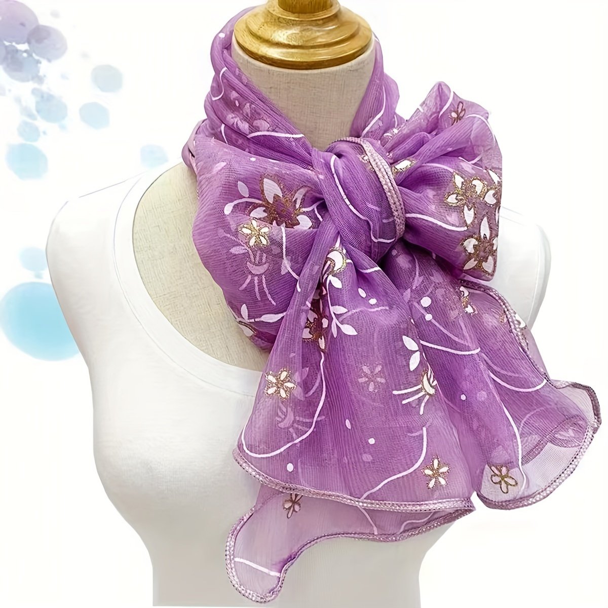 Purple Print Lace Thin Scarf, Vintage Breathable Shawl Women Head Wrap Turban Outdoor Windproof Hijab