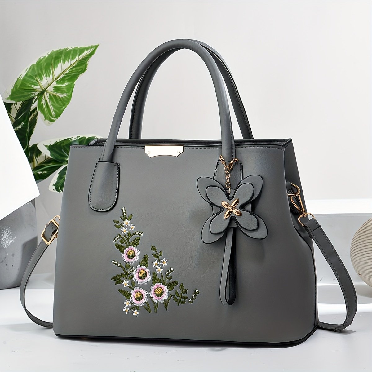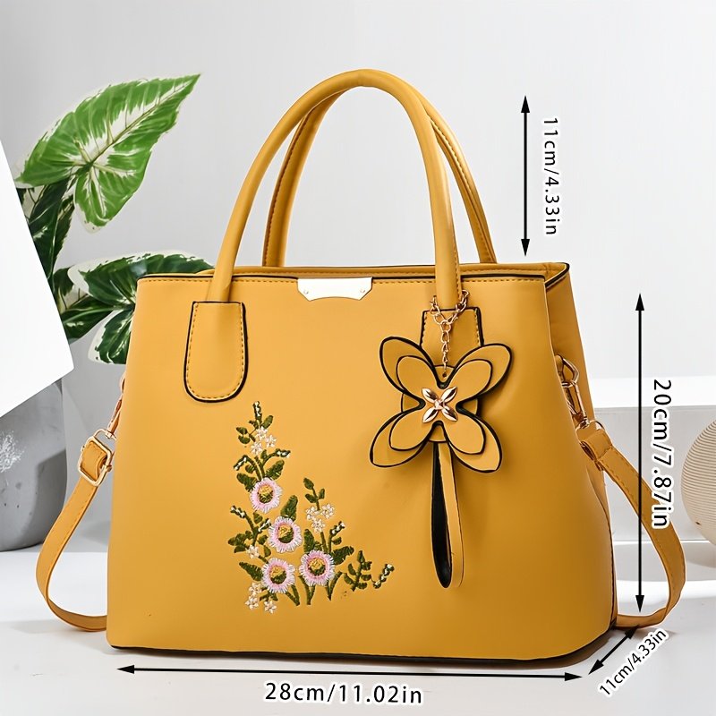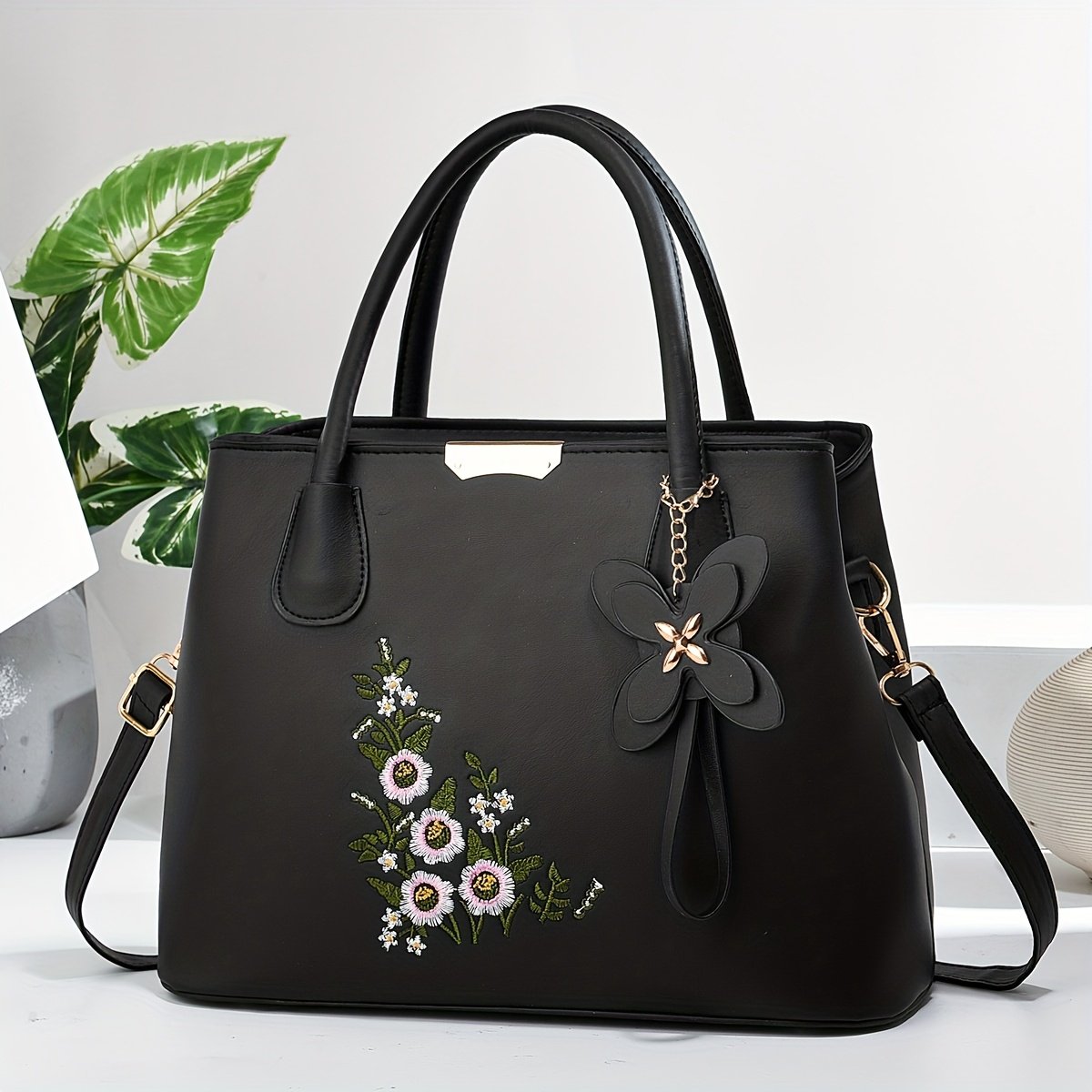 Women’S Elegant Floral Embroidered Shoulder Bag – Large Capacity, Removable Strap, Zipper Closure, Polyester Lining, Black Handbag for Commuting & Casual Outings, Casual Outing Bag | Floral Embroidery Bag | Durable Zipper Closure, Purse