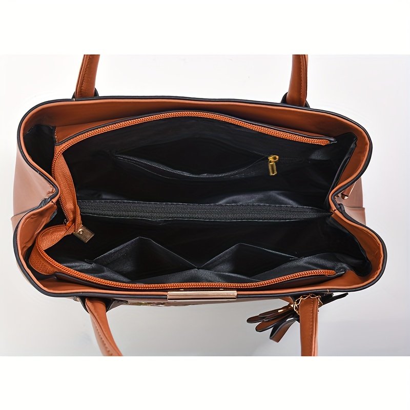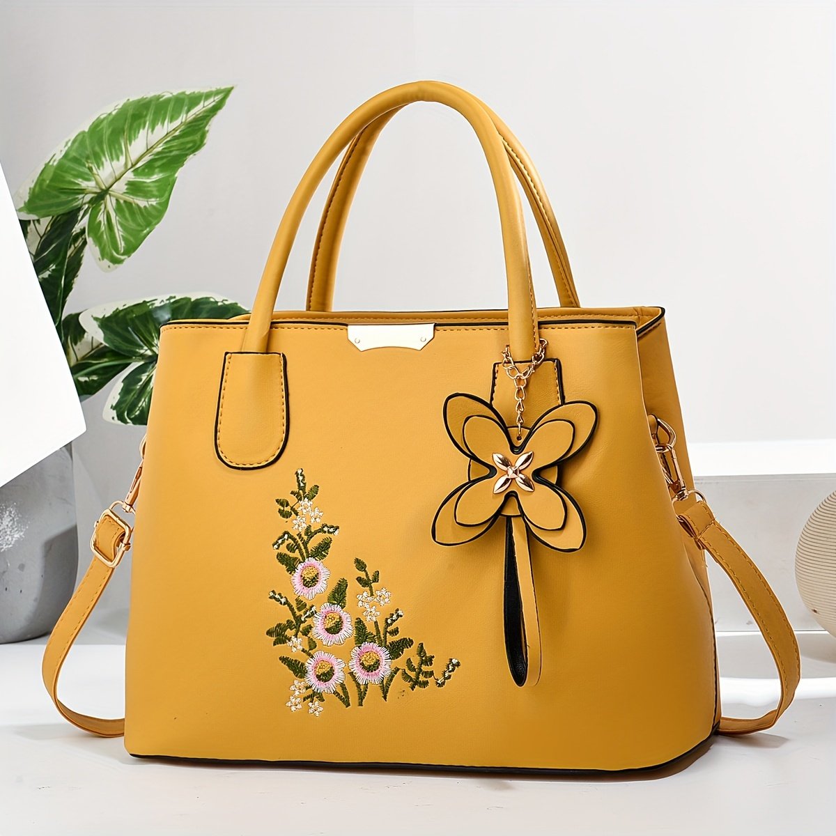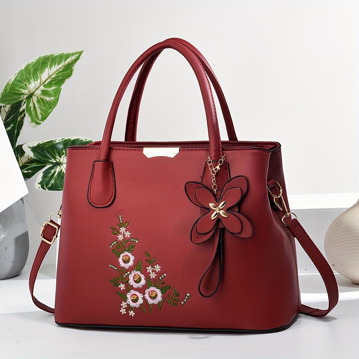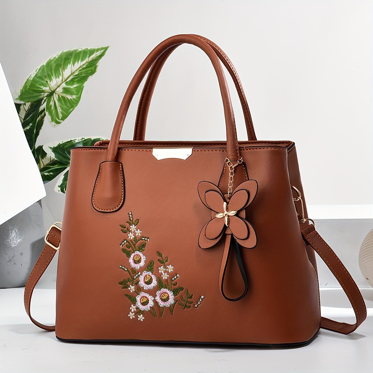Women’S Elegant Floral Embroidered Shoulder Bag – Large Capacity, Removable Strap, Zipper Closure, Polyester Lining, Black Handbag for Commuting & Casual Outings, Casual Outing Bag | Floral Embroidery Bag | Durable Zipper Closure, Purse