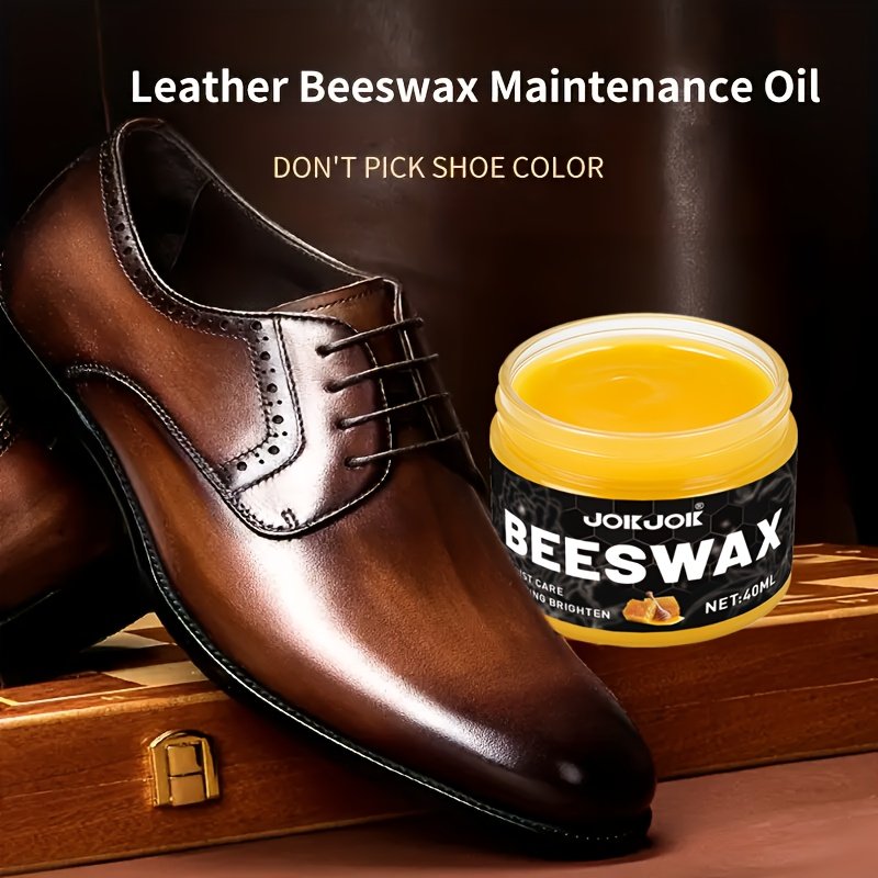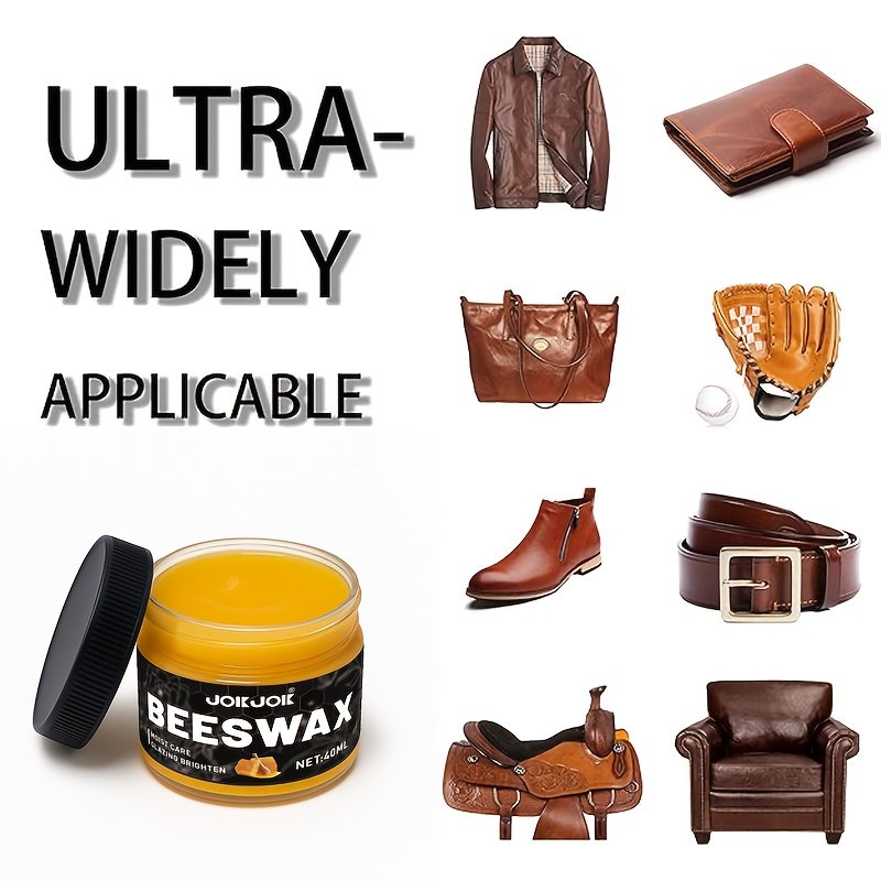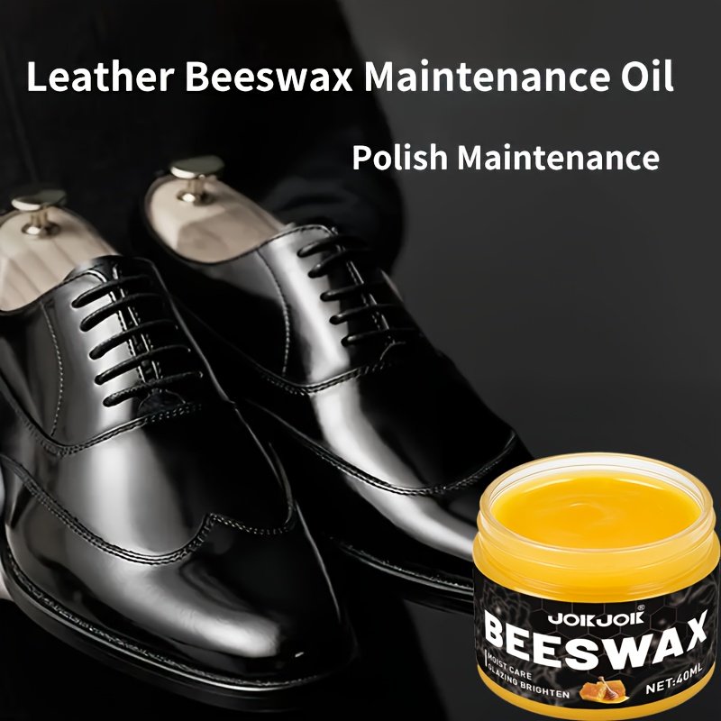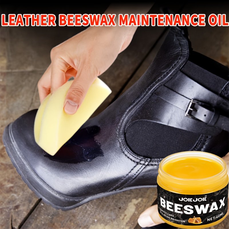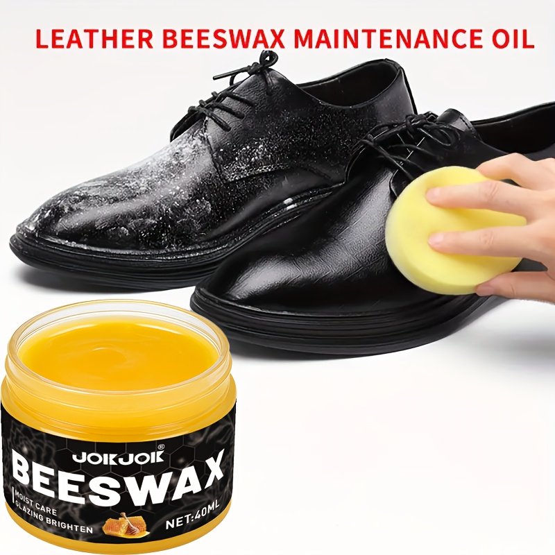 Shoe polish care set with 1 polishing sponge, beeswax oil for Faux, universal color for shoes, bags, jackets, sofas and other Faux goods Quick polishing and deep nourishment