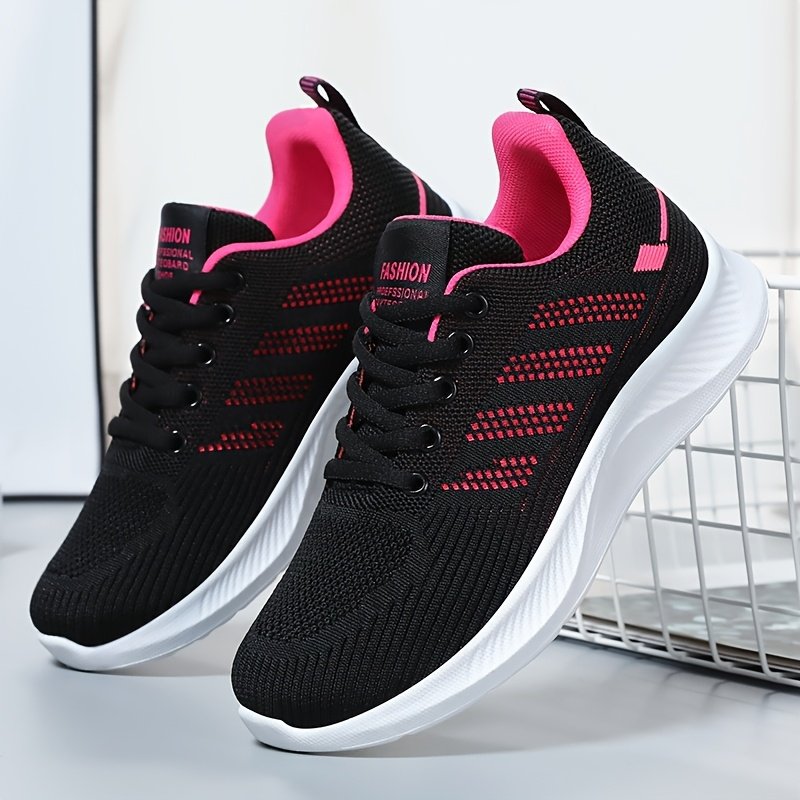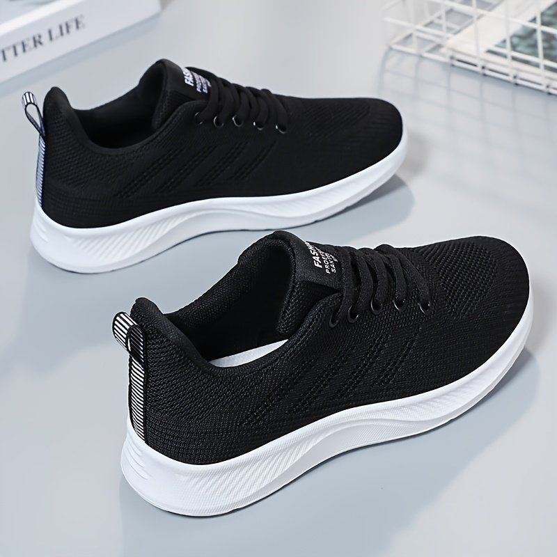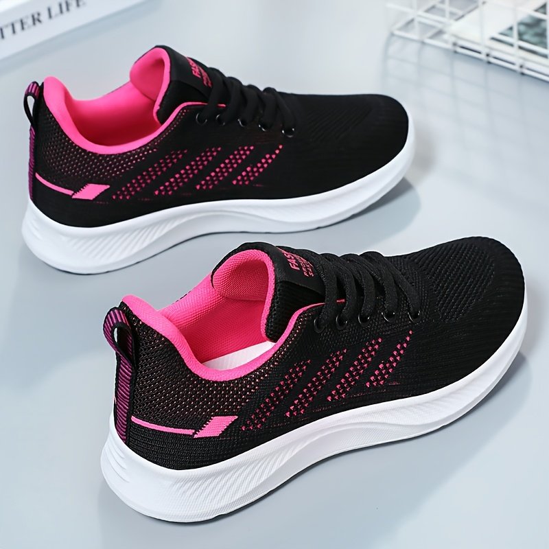 Women’s Breathable Knit Running Sneakers – Lightweight Casual Sneakers with Soft PVC Sole, Black & Purple Mesh Design for Comfortable Casual Attire