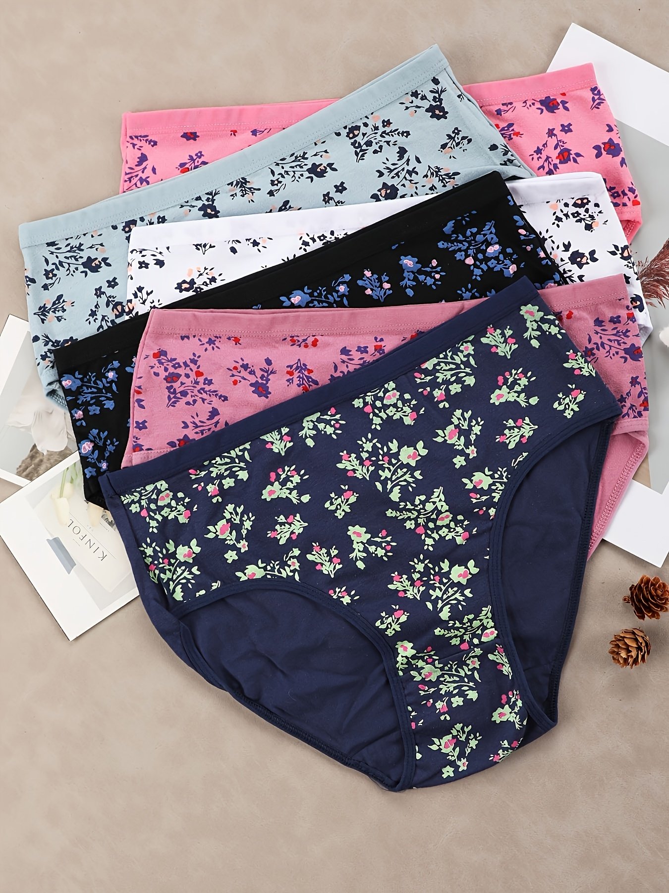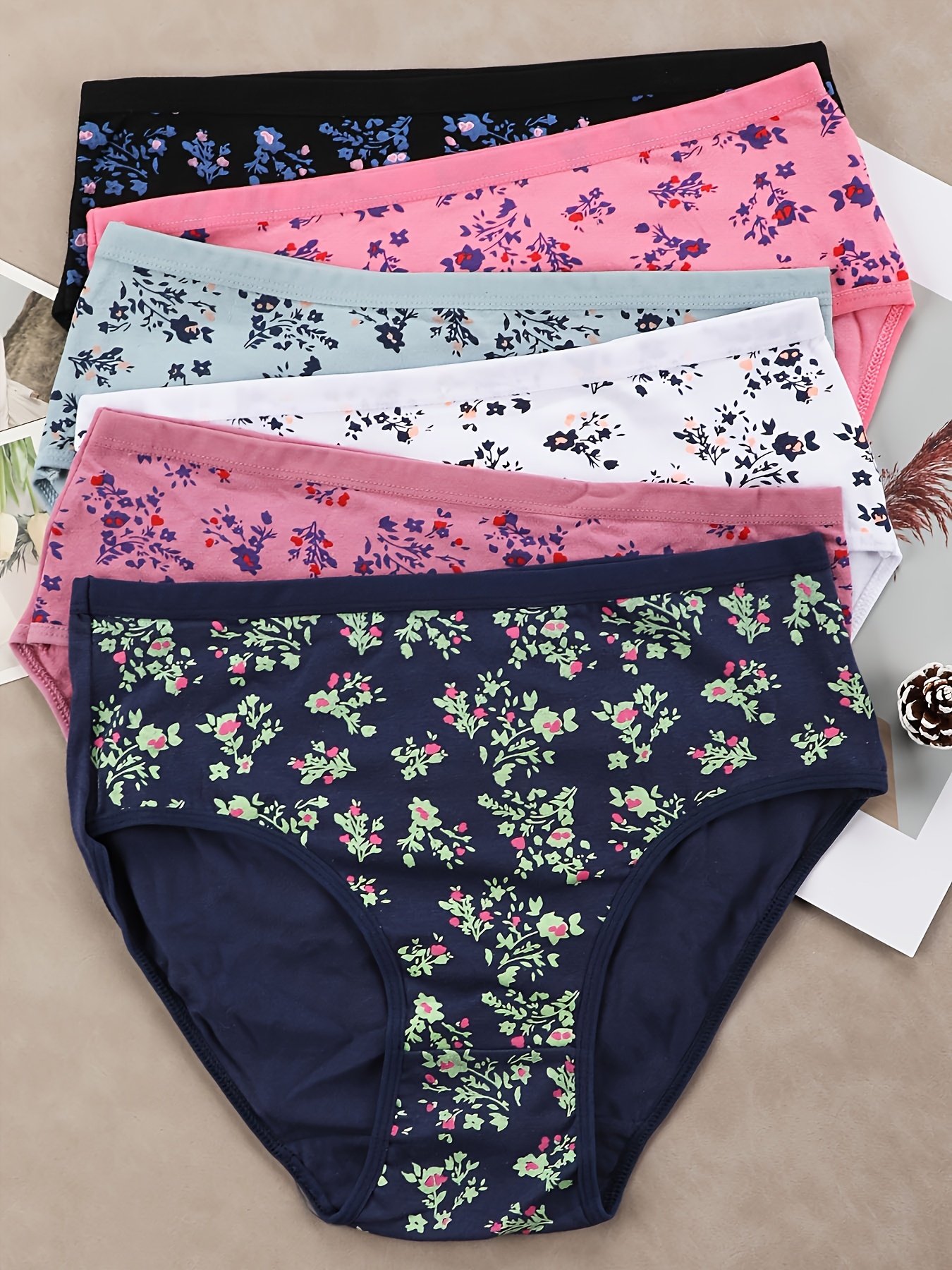 6-Pack Women’S Mid-Rise Briefs – Soft Everyday underwear with Floral Print (Pink/Blue/Black/Teal/Gray/White) – Everyday & Special Occasion Panties – Bulk Pack for Women – Elegant Floral Pattern Underwear, Comfortable Daily Wear, Stylish Undergarments, Highquality Fabric, Multipack Underwear, Home Comfort Wear
